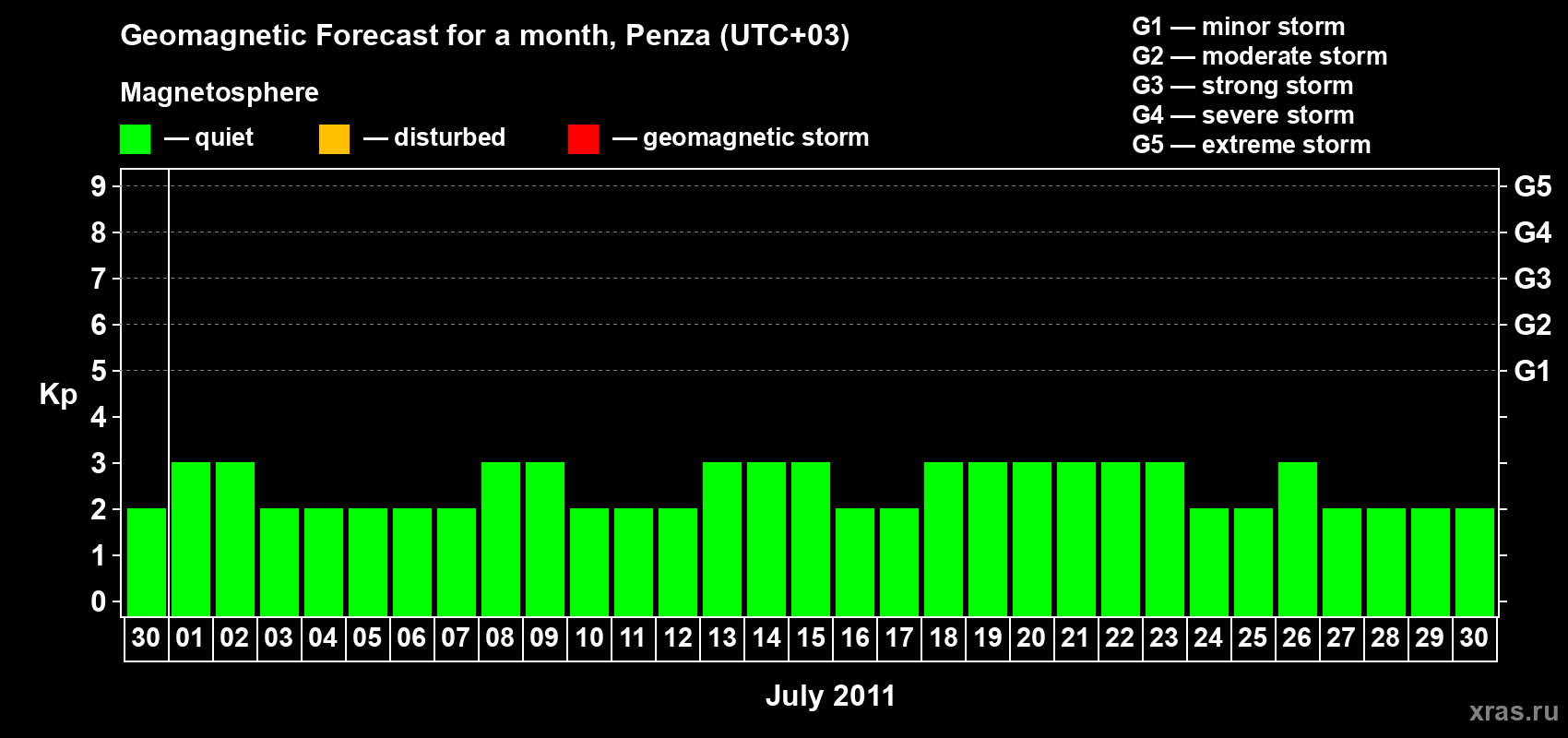 Geomagnetic storm forecast in Penza for Jun 30, 2011