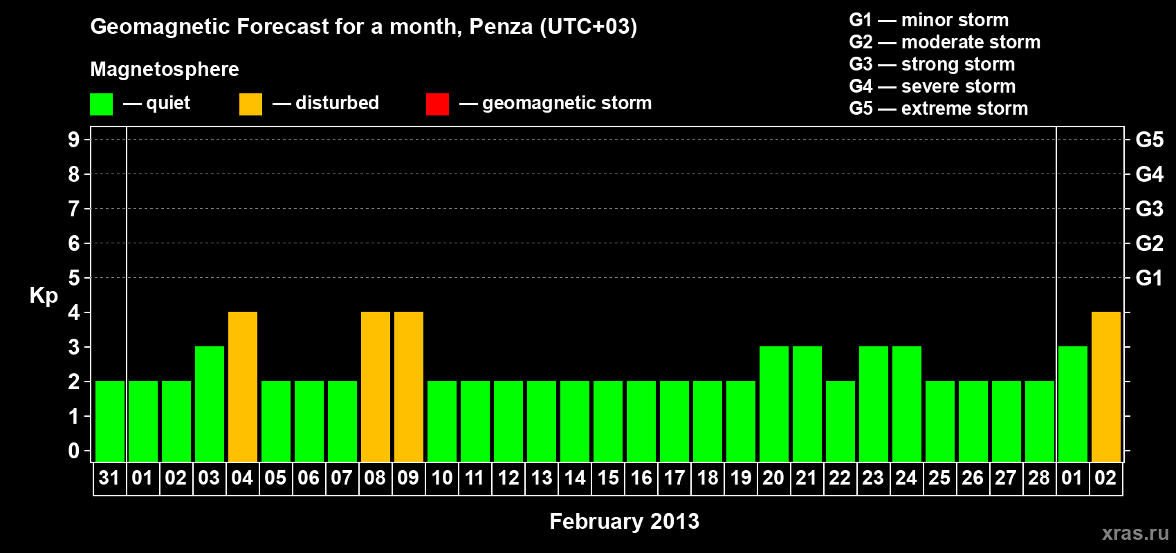 Geomagnetic storm forecast in Penza for Jan 31, 2013