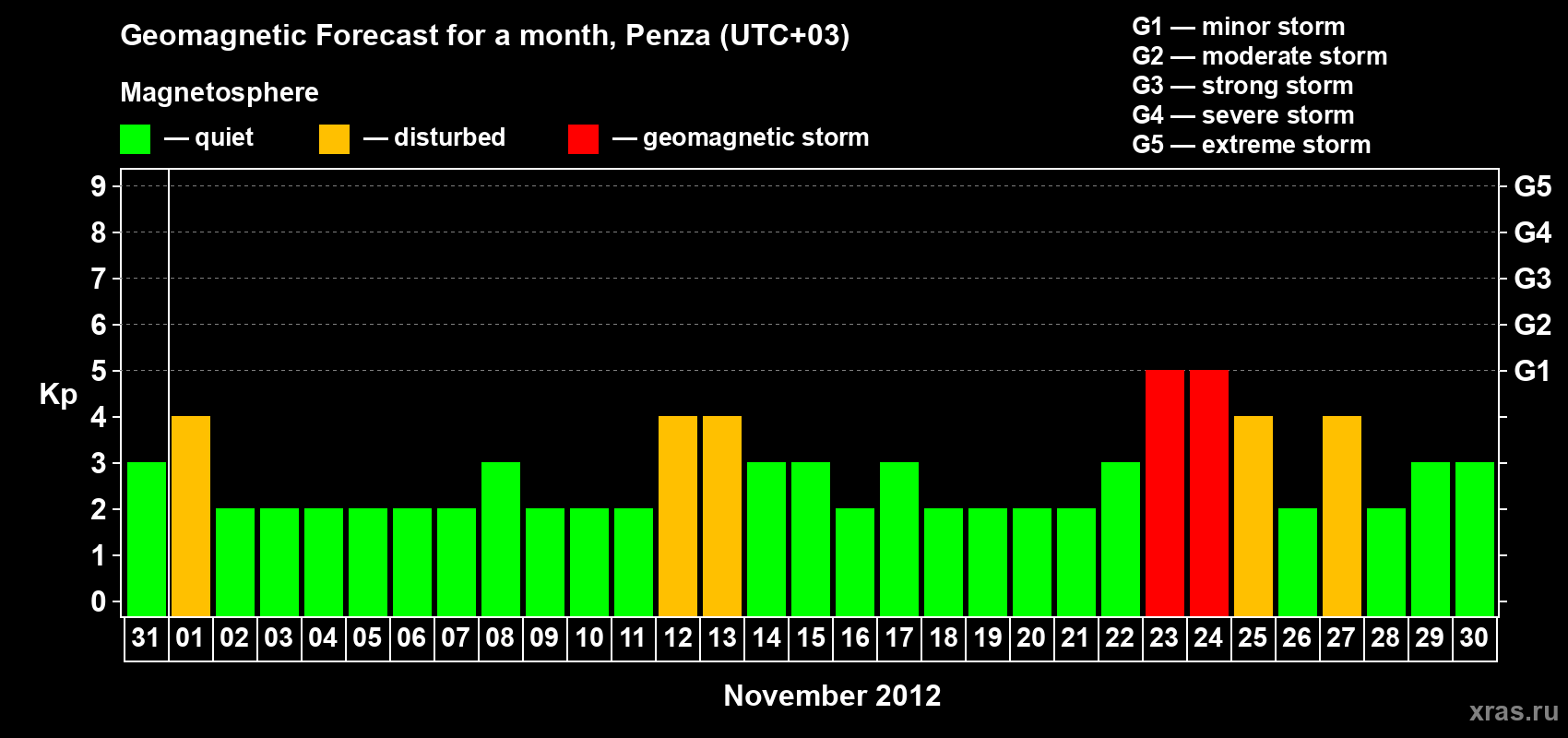 Geomagnetic storm forecast in Penza for Oct 31, 2012