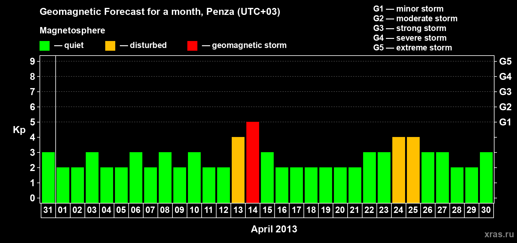 Geomagnetic storm forecast in Penza for Mar 31, 2013