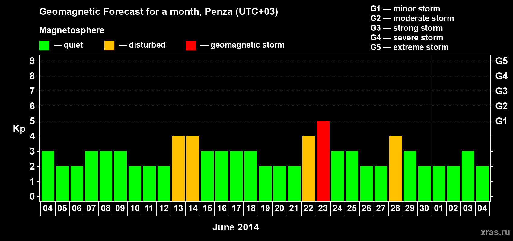 Geomagnetic storm forecast in Penza for Jun 04, 2014