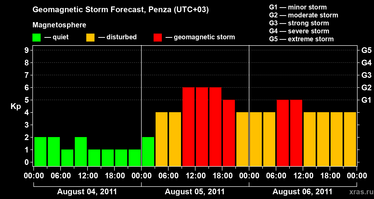 Geomagnetic storm forecast in Penza for Aug 04, 2011