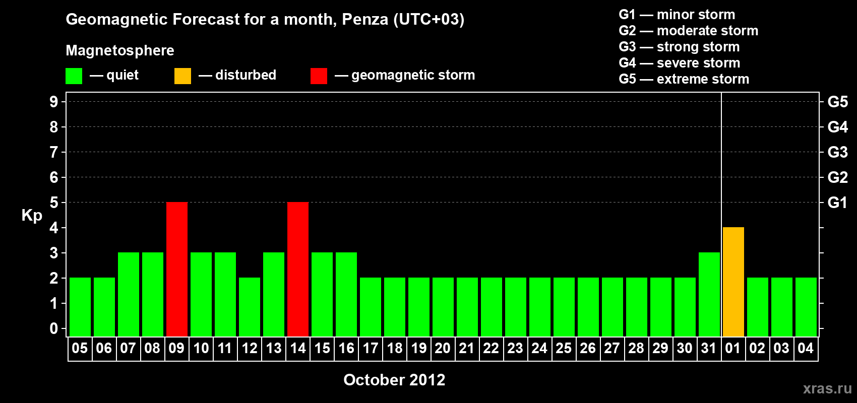 Geomagnetic storm forecast in Penza for Oct 05, 2012