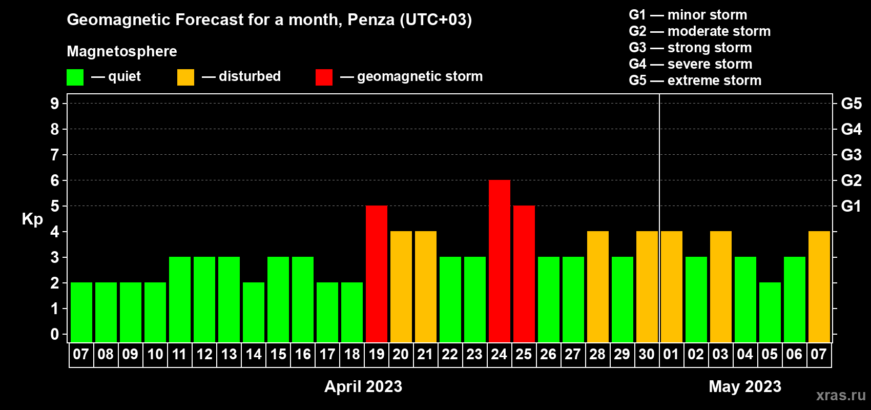 Geomagnetic storm forecast in Penza for Apr 07, 2023