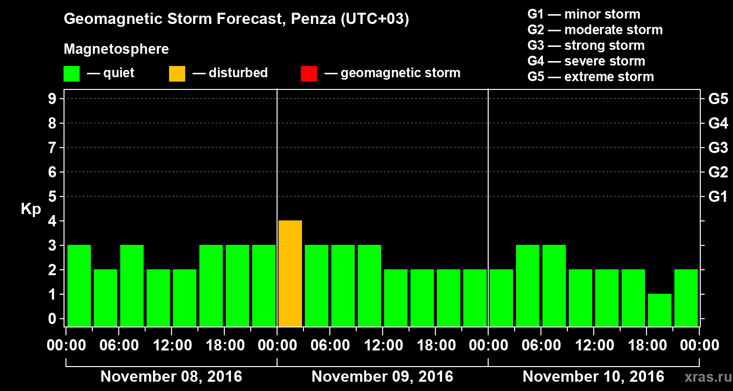 Geomagnetic activity forecast in Penza — Nov 08, 2016
