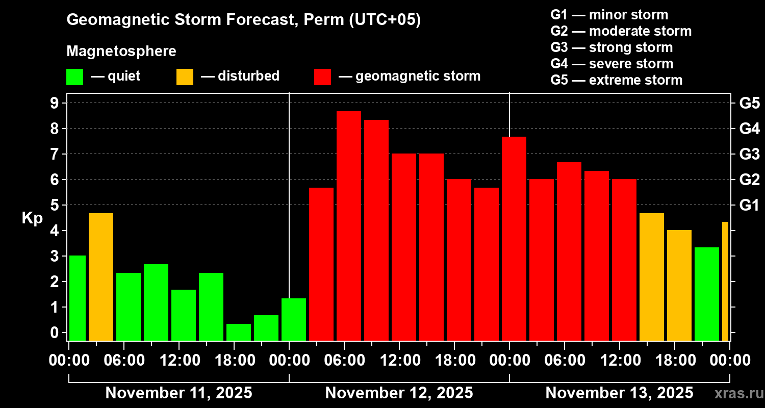 Geomagnetic storm forecast in Perm for Nov 11, 2025