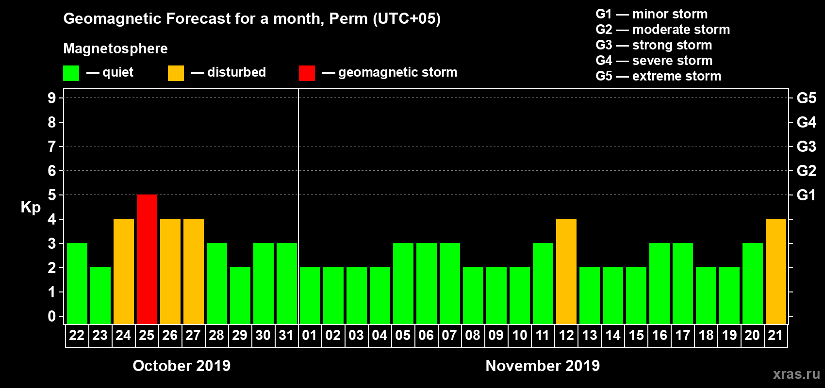 Geomagnetic activity forecast in Perm — Oct 22, 2019