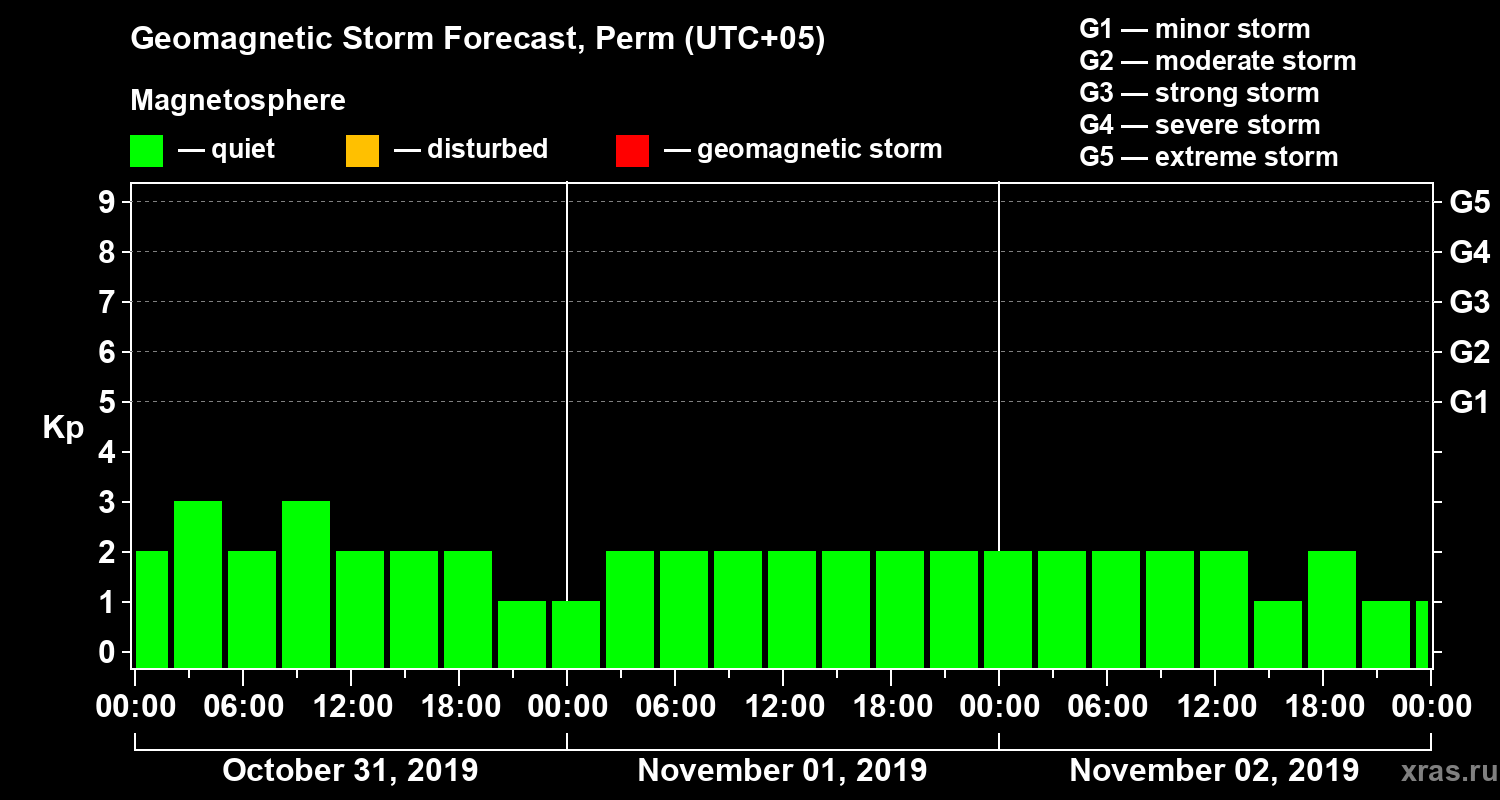 Geomagnetic storm forecast in Perm for Oct 31, 2019