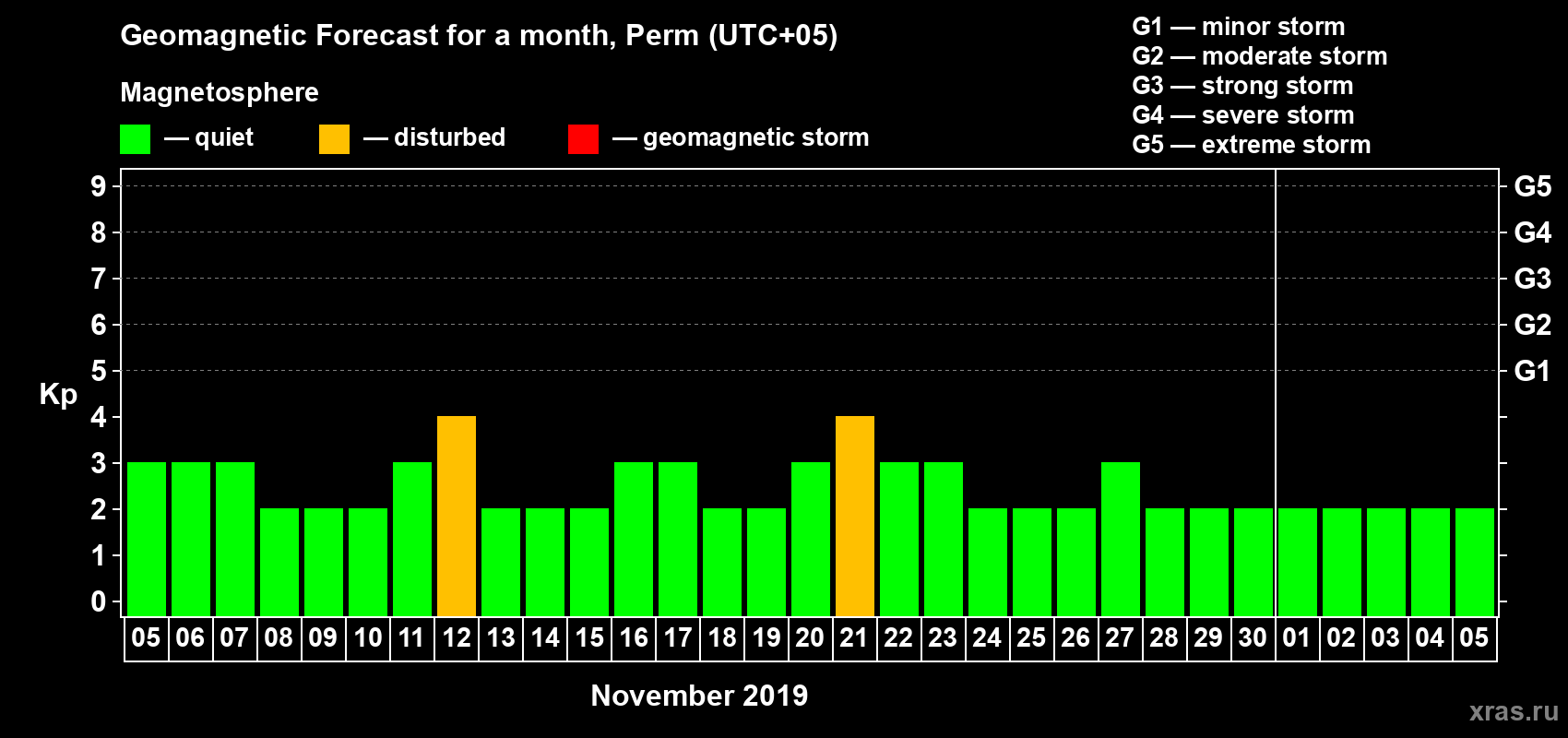 Geomagnetic storm forecast in Perm for Nov 05, 2019