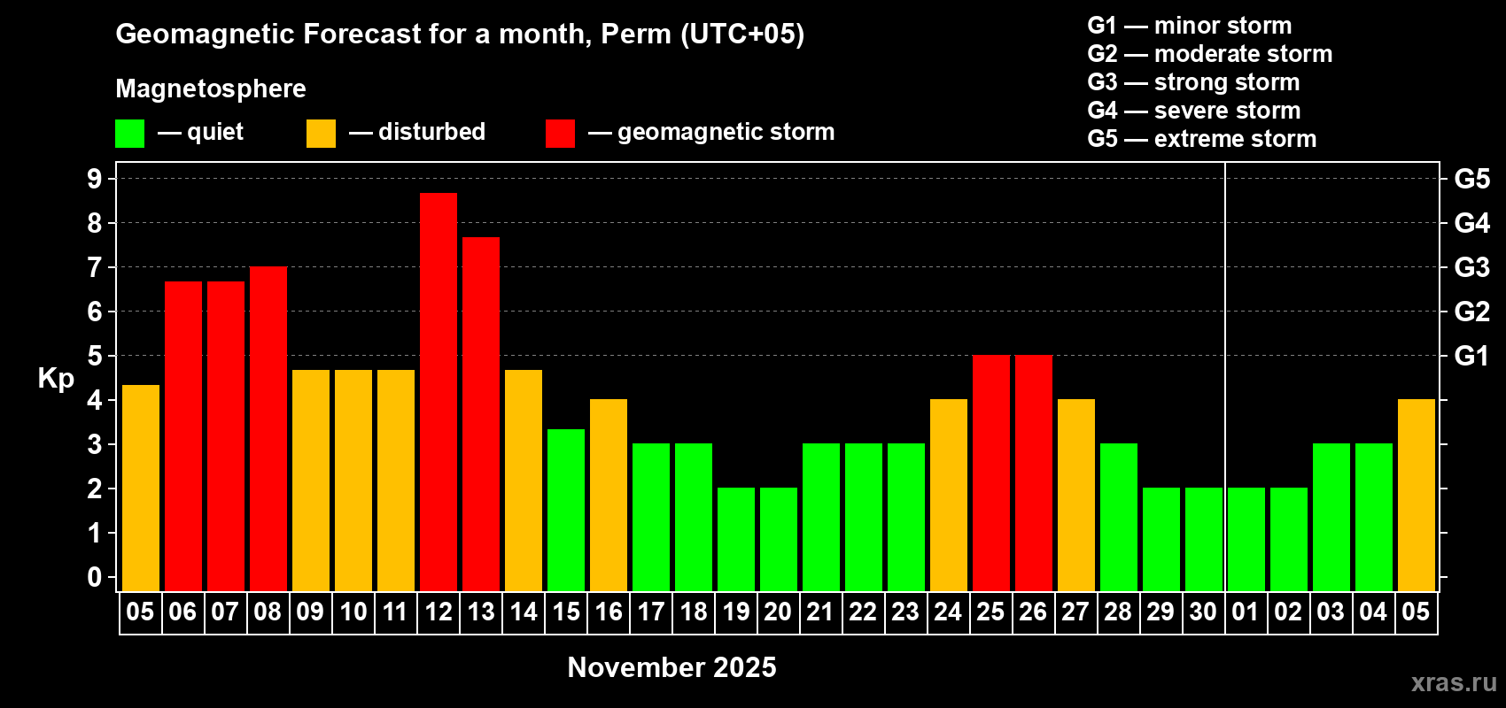 Geomagnetic storm forecast in Perm for Nov 05, 2025