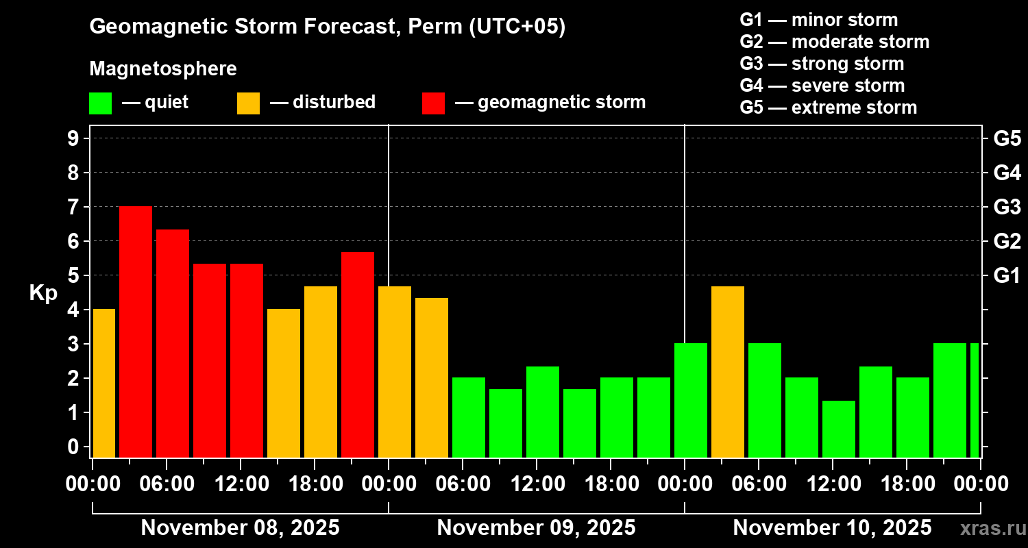 Geomagnetic storm forecast in Perm for Nov 08, 2025