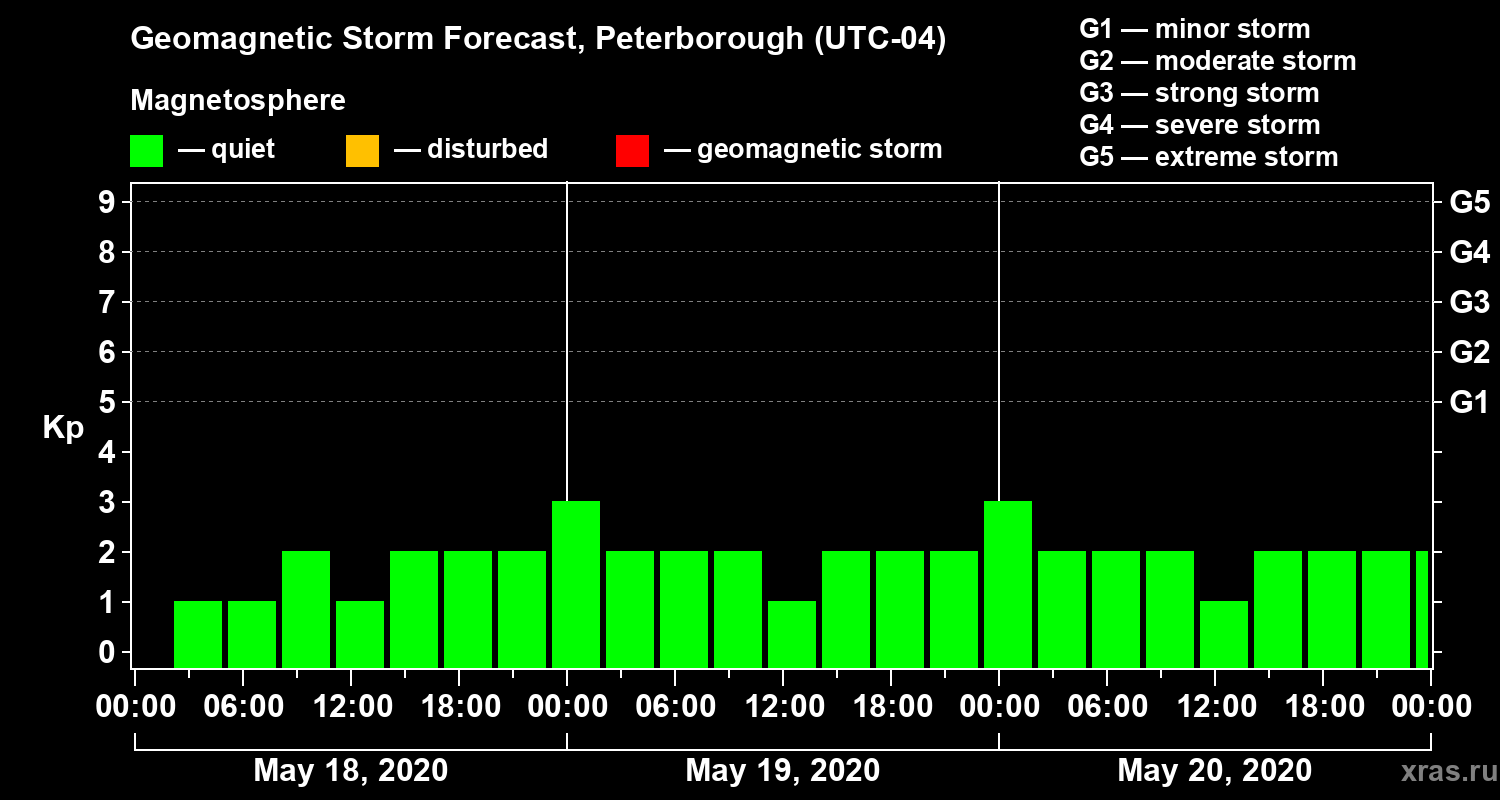 Geomagnetic activity forecast in Peterborough — May 18, 2020