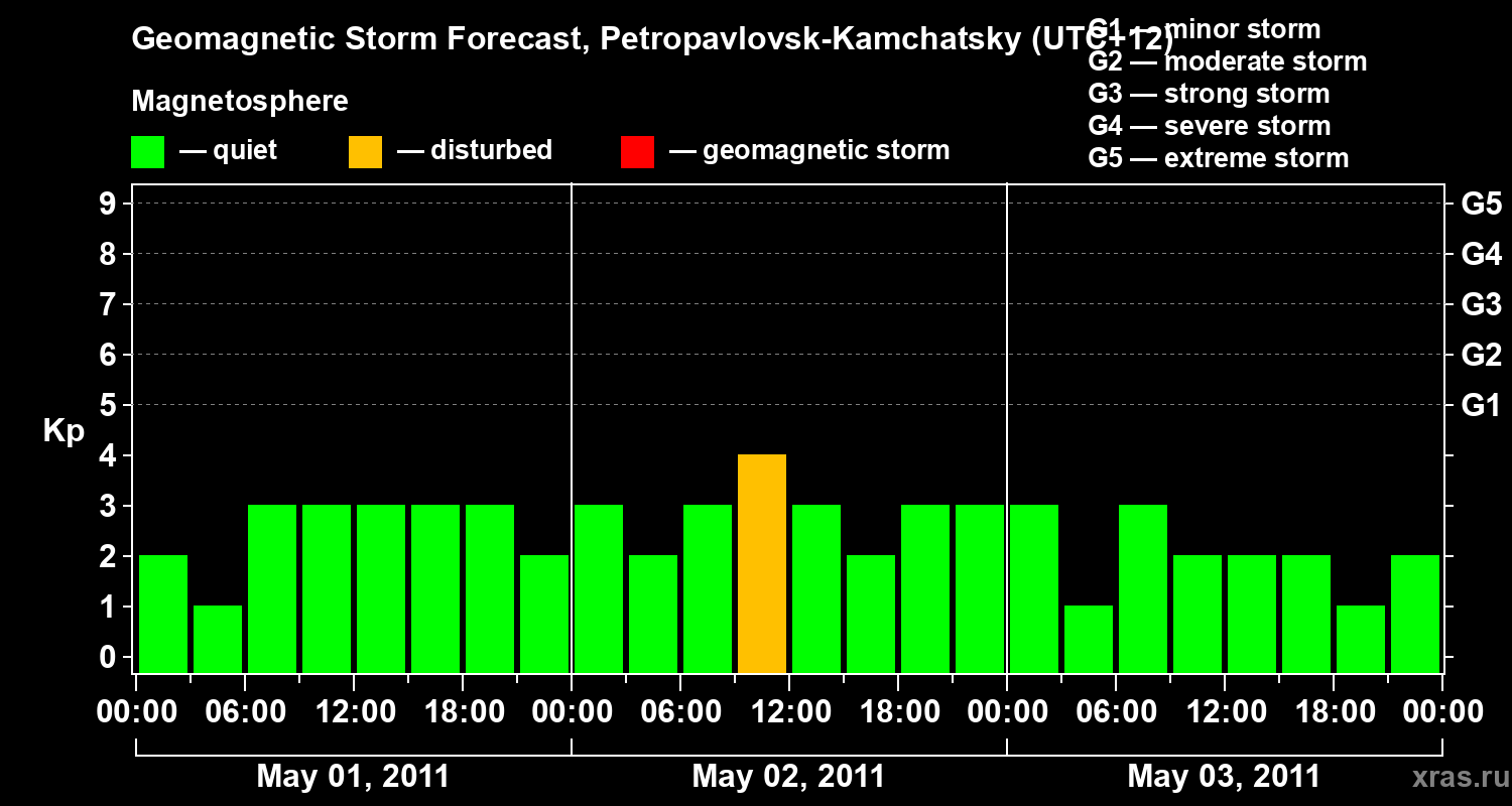 Geomagnetic activity forecast in Petropavlovsk-Kamchatsky — May 01, 2011