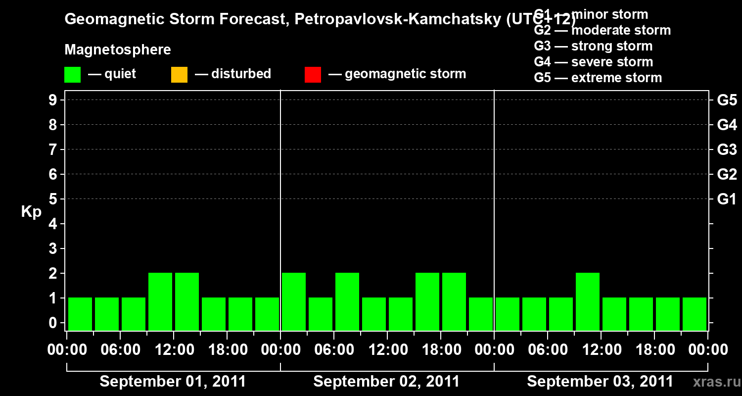 Geomagnetic storm forecast in Petropavlovsk-Kamchatsky for Sep 01, 2011