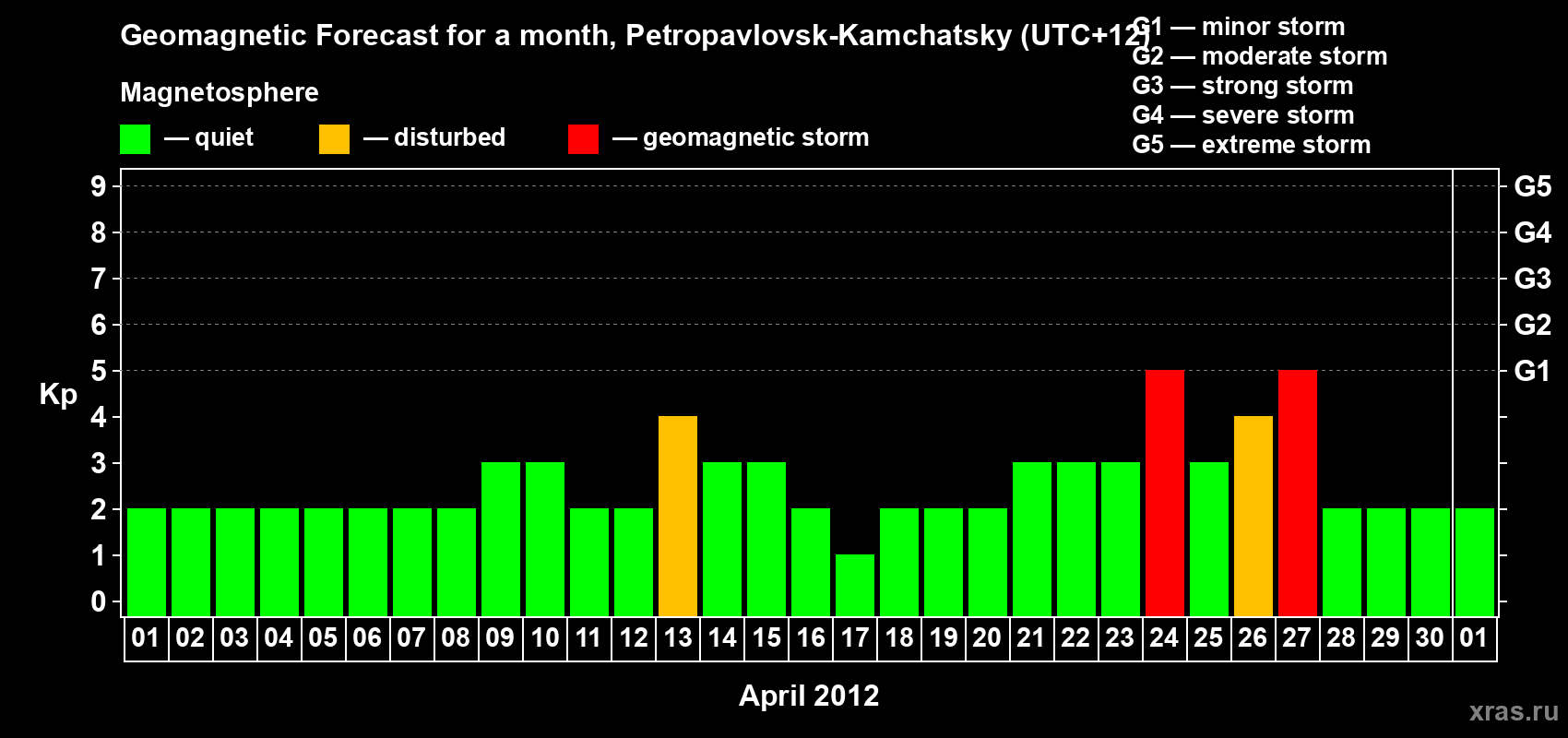 Geomagnetic storm forecast in Petropavlovsk-Kamchatsky for Apr 01, 2012