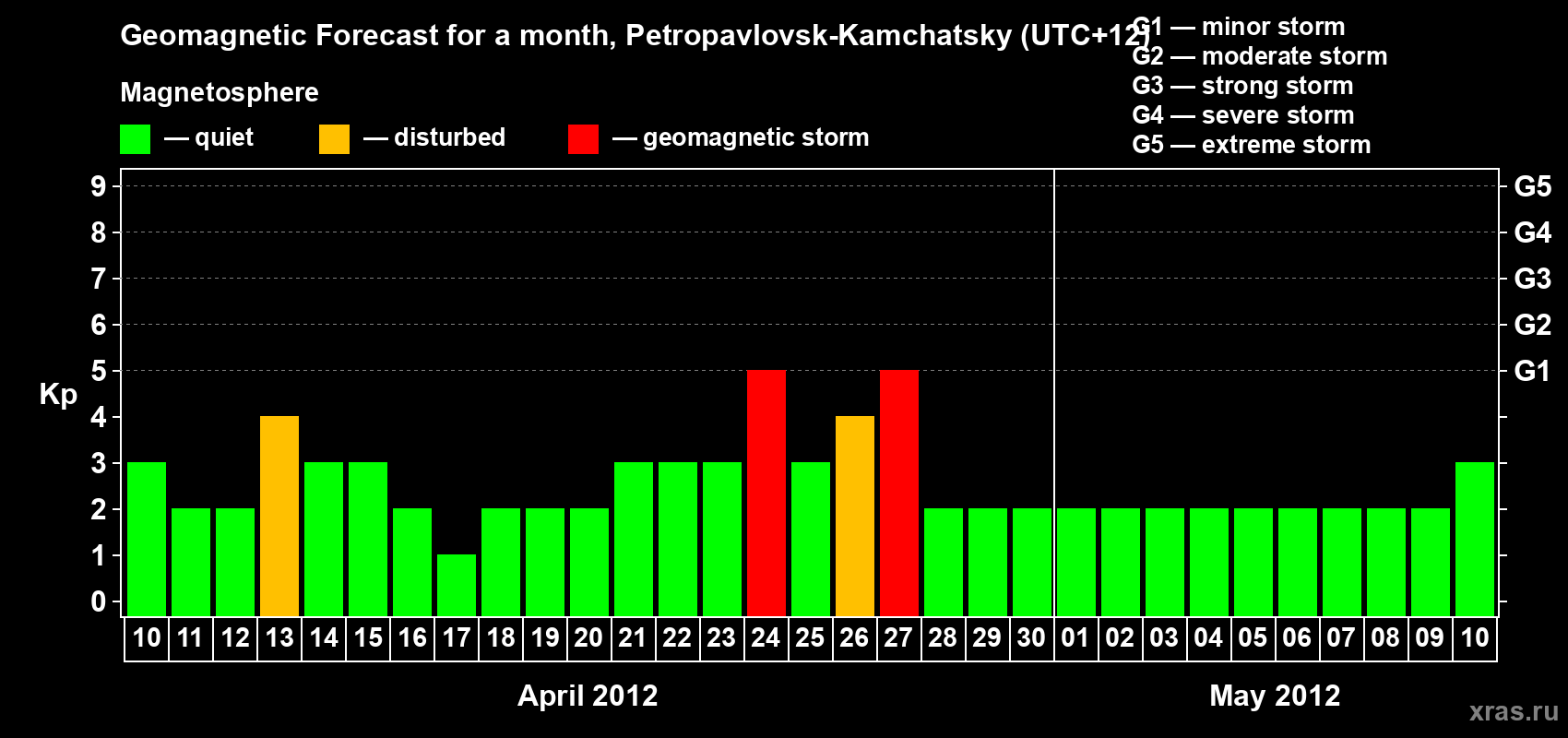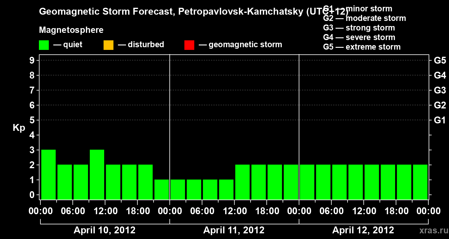 Geomagnetic storm forecast in Petropavlovsk-Kamchatsky for Apr 10, 2012