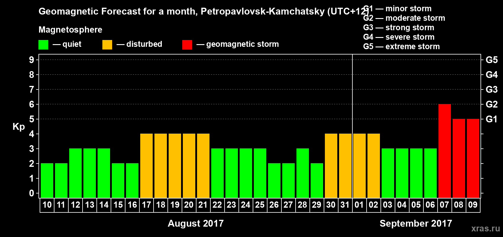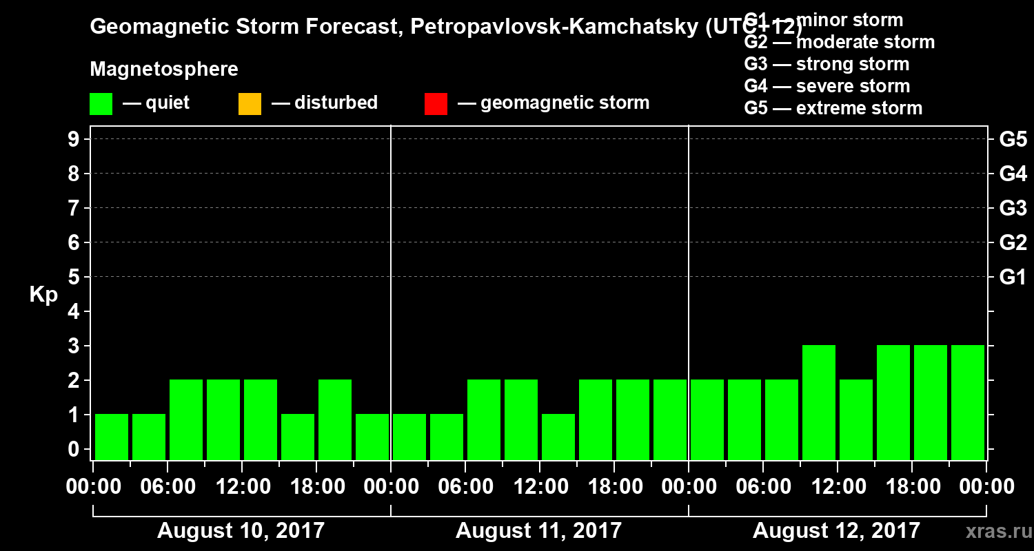Geomagnetic storm forecast in Petropavlovsk-Kamchatsky for Aug 10, 2017