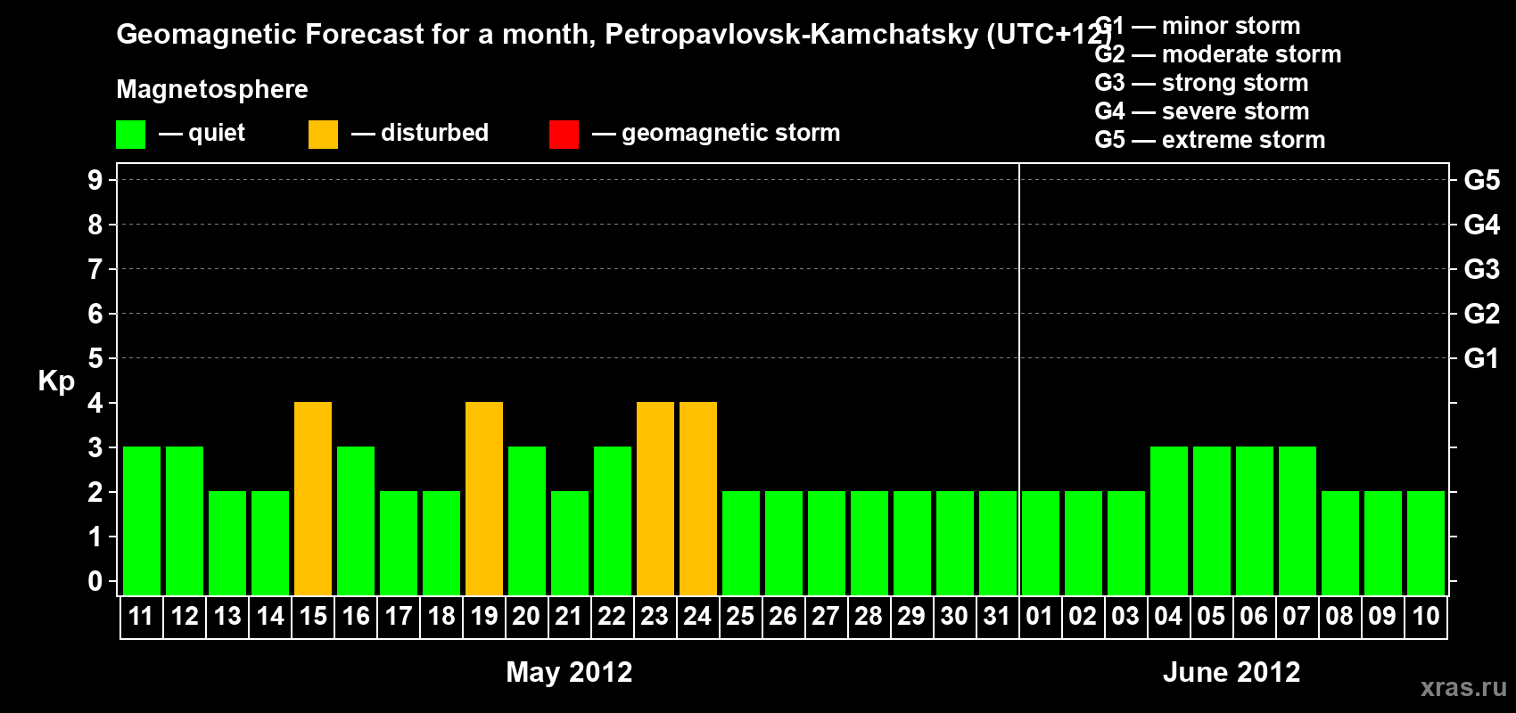 Geomagnetic activity forecast in Petropavlovsk-Kamchatsky — May 11, 2012
