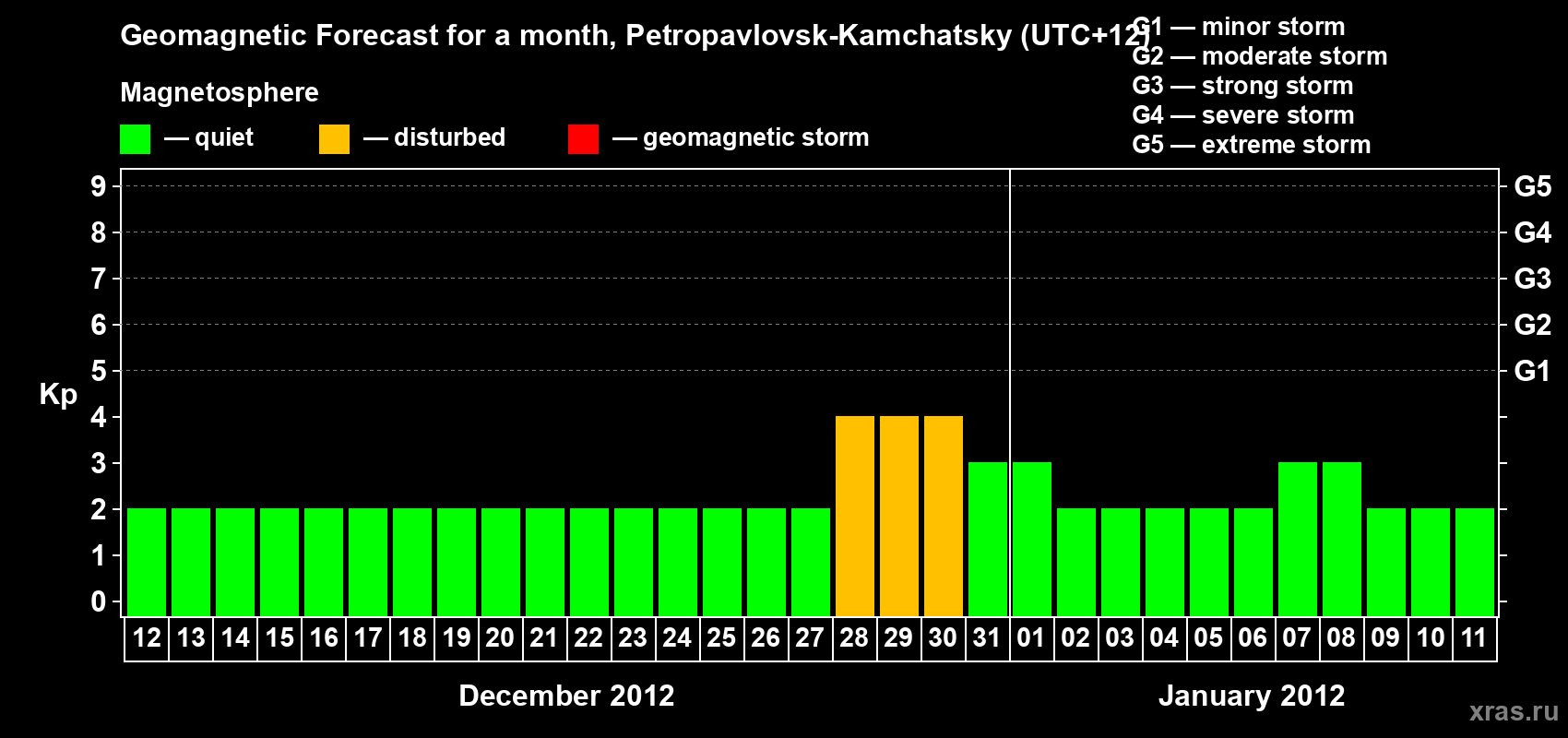 Geomagnetic storm forecast in Petropavlovsk-Kamchatsky for Dec 12, 2011