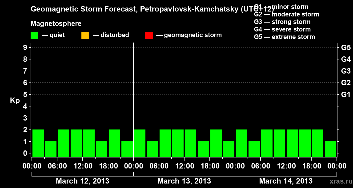 Geomagnetic storm forecast in Petropavlovsk-Kamchatsky for Mar 12, 2013