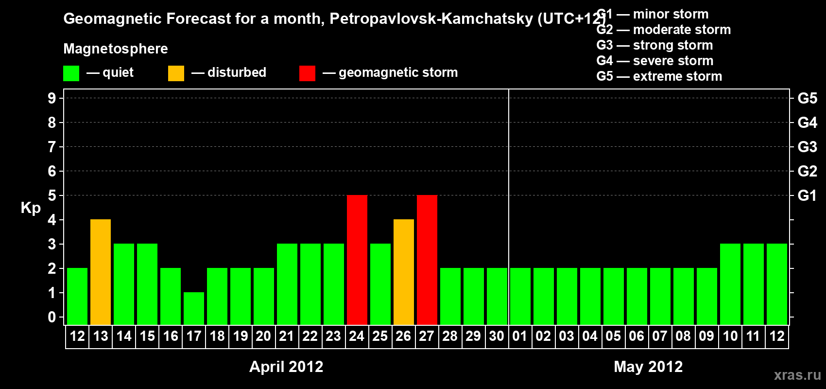 Geomagnetic storm forecast in Petropavlovsk-Kamchatsky for Apr 12, 2012