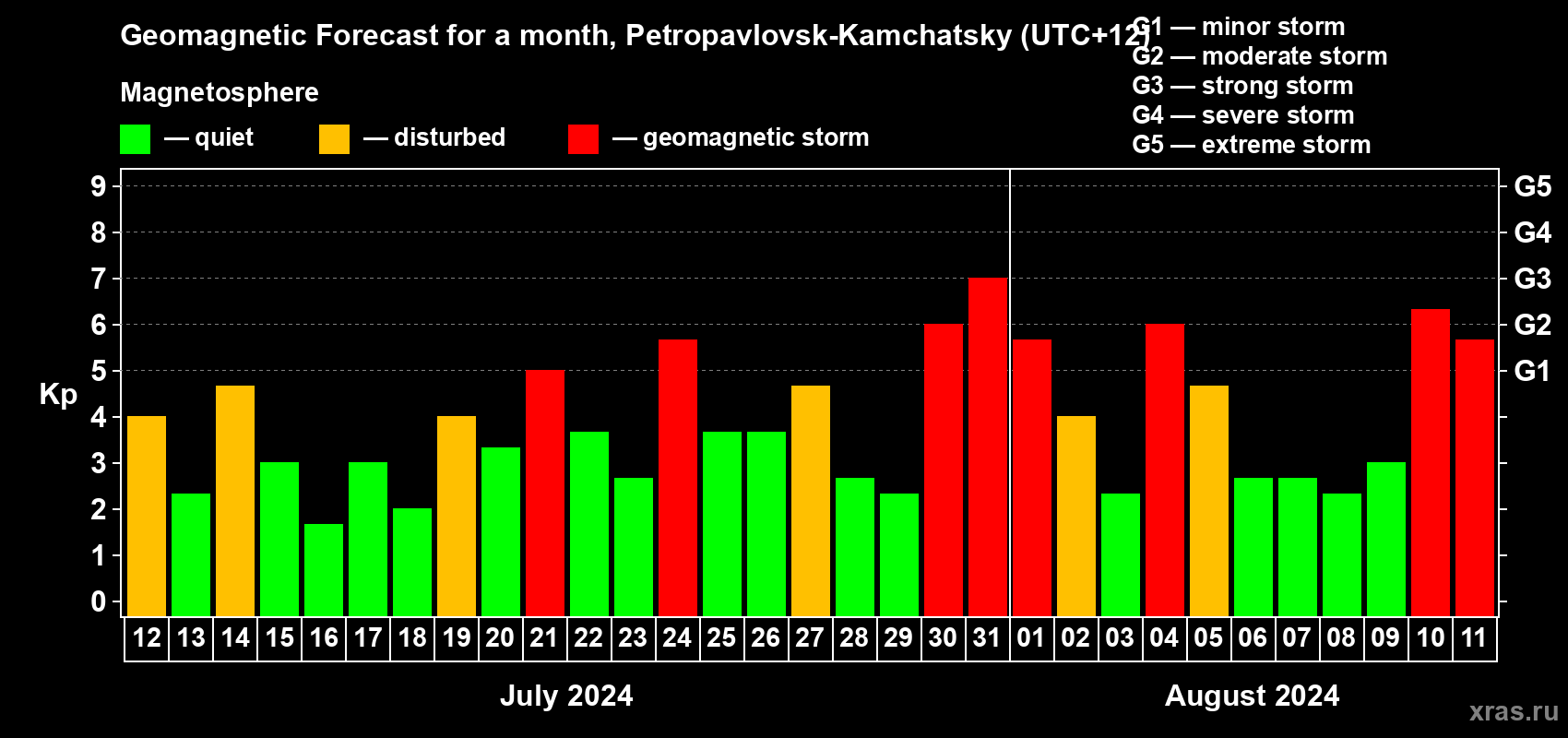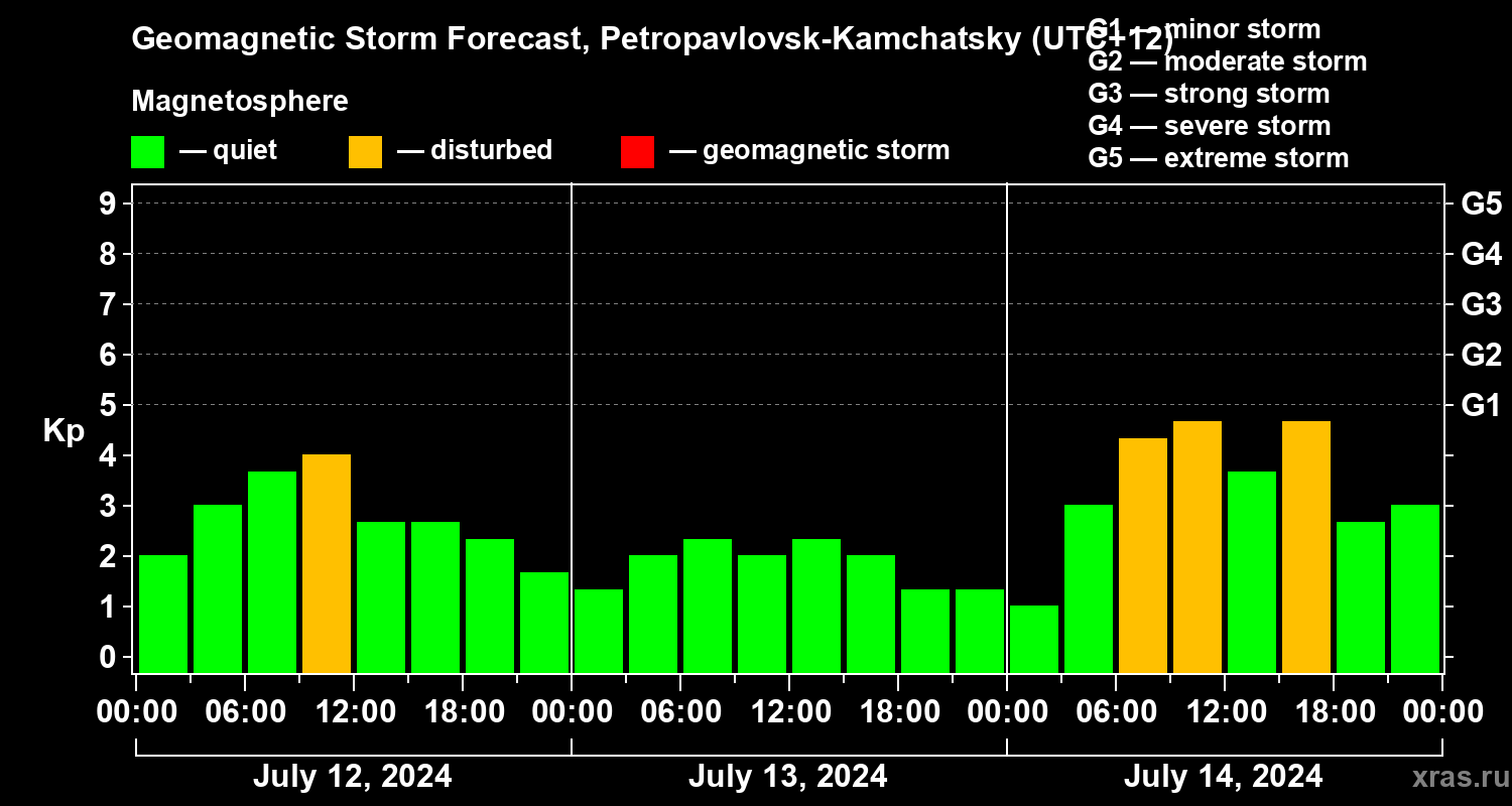 Geomagnetic activity forecast in Petropavlovsk-Kamchatsky — Jul 12, 2024