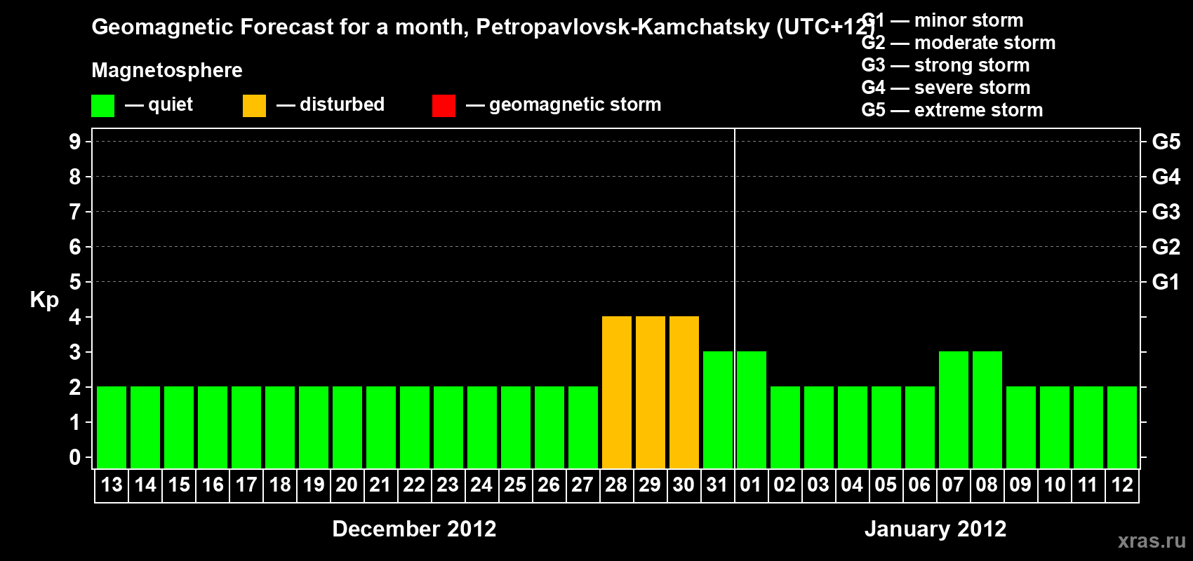 Geomagnetic storm forecast in Petropavlovsk-Kamchatsky for Dec 13, 2011