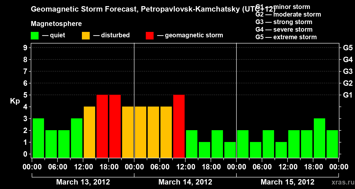 Geomagnetic storm forecast in Petropavlovsk-Kamchatsky for Mar 13, 2012