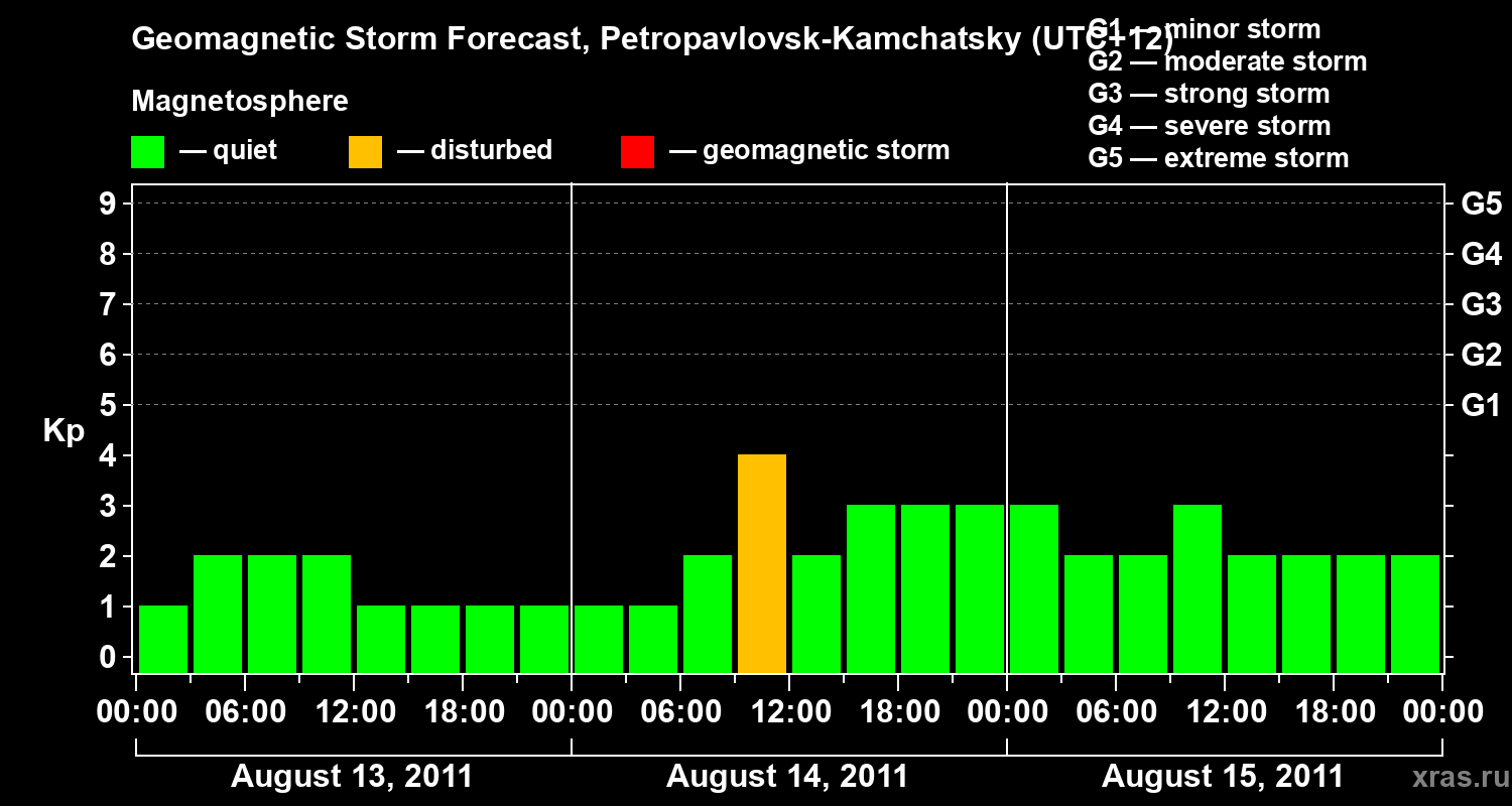 Geomagnetic storm forecast in Petropavlovsk-Kamchatsky for Aug 13, 2011