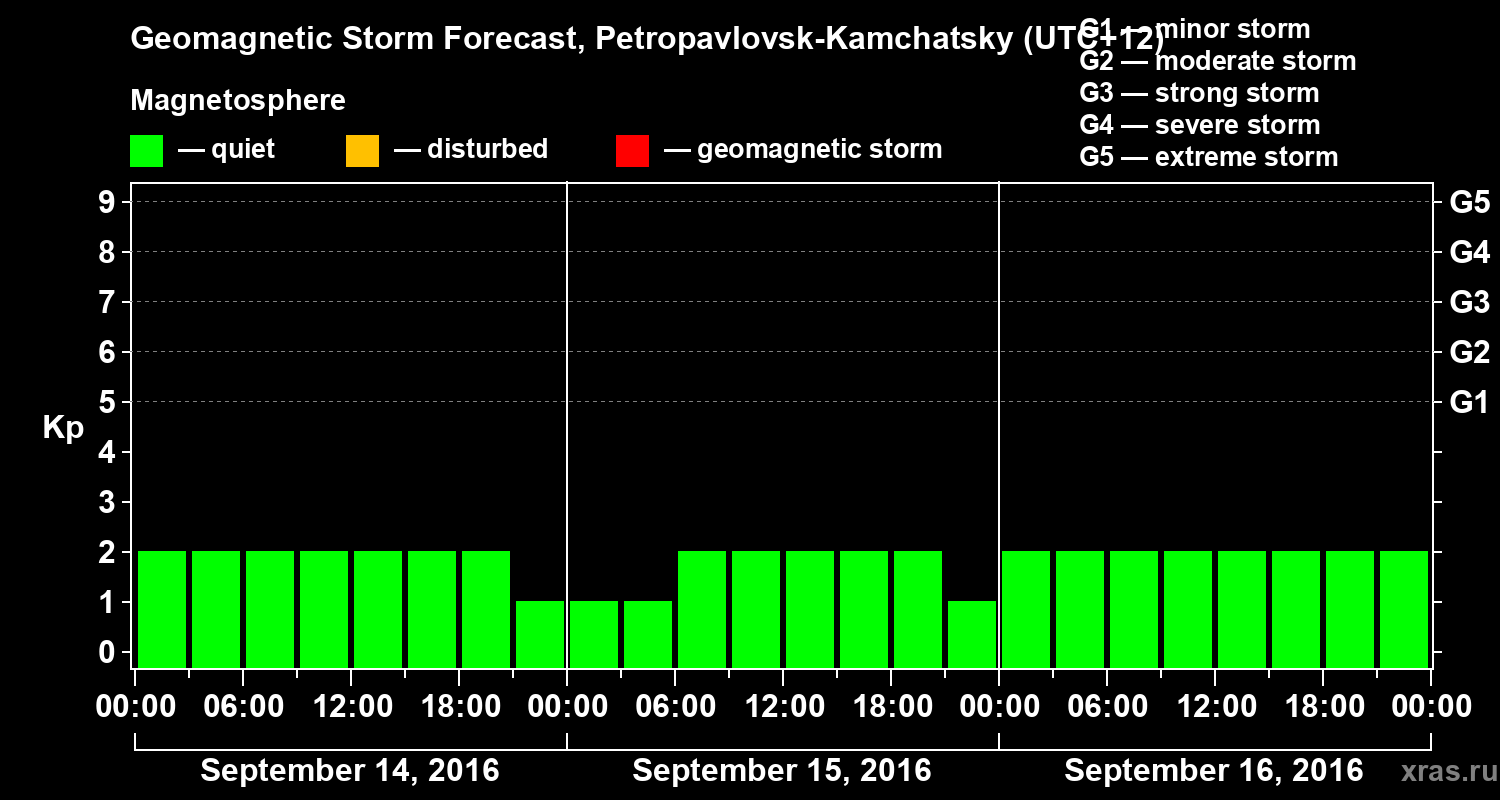 Geomagnetic activity forecast in Petropavlovsk-Kamchatsky — Sep 14, 2016