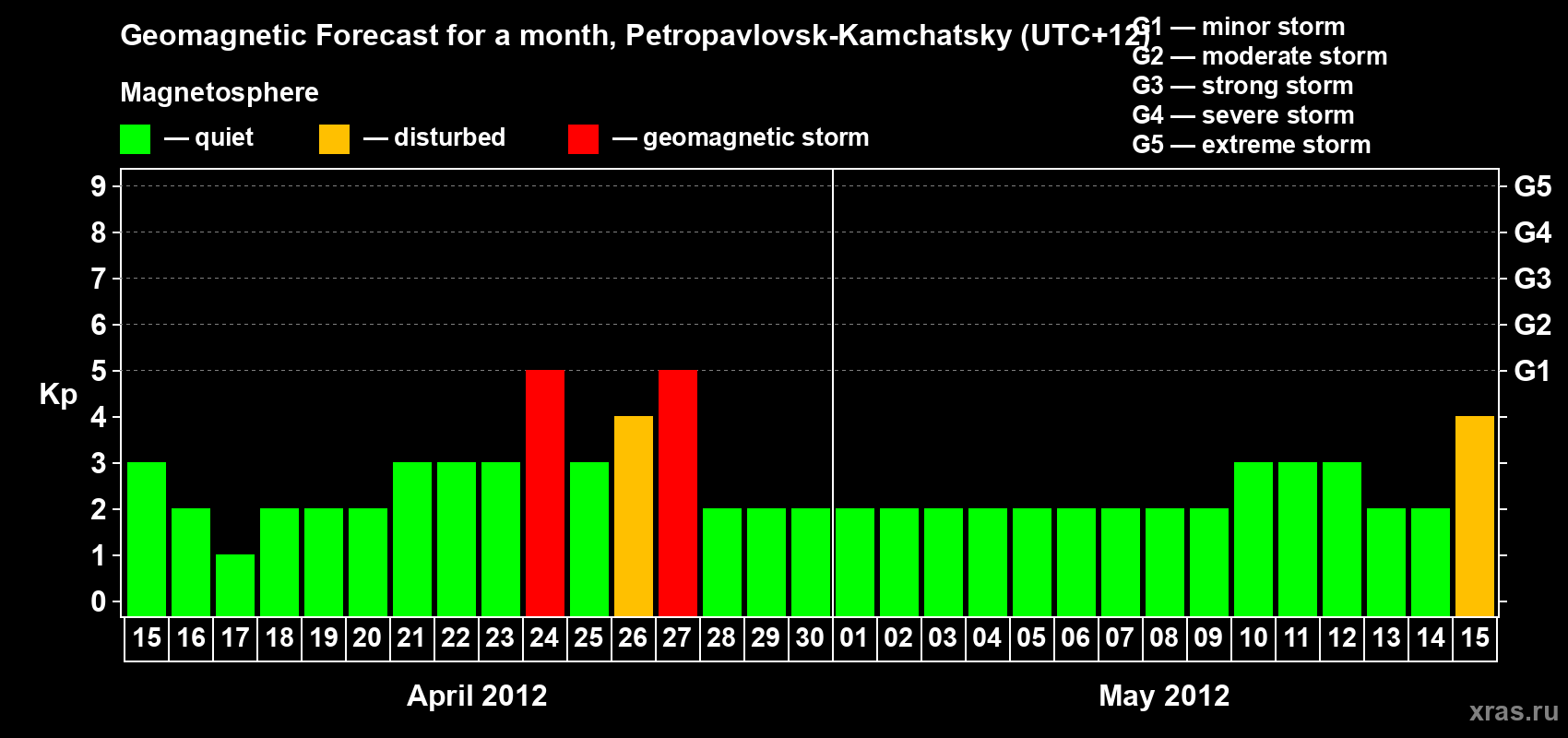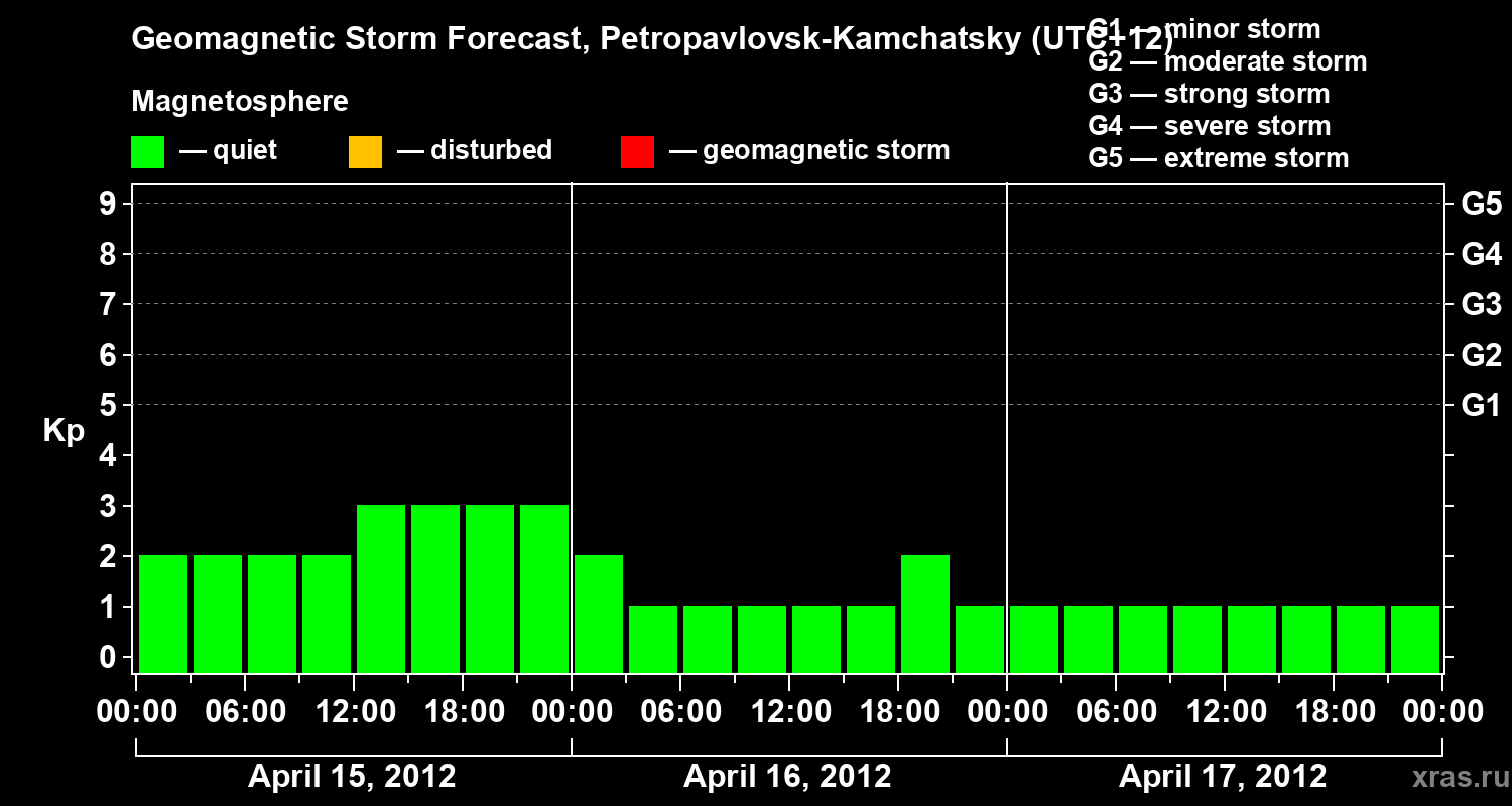 Geomagnetic storm forecast in Petropavlovsk-Kamchatsky for Apr 15, 2012