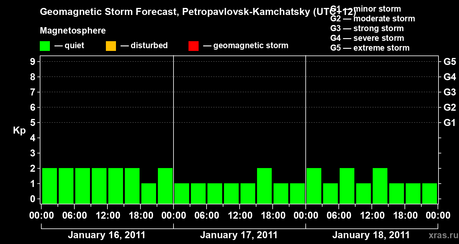 Geomagnetic storm forecast in Petropavlovsk-Kamchatsky for Jan 16, 2011