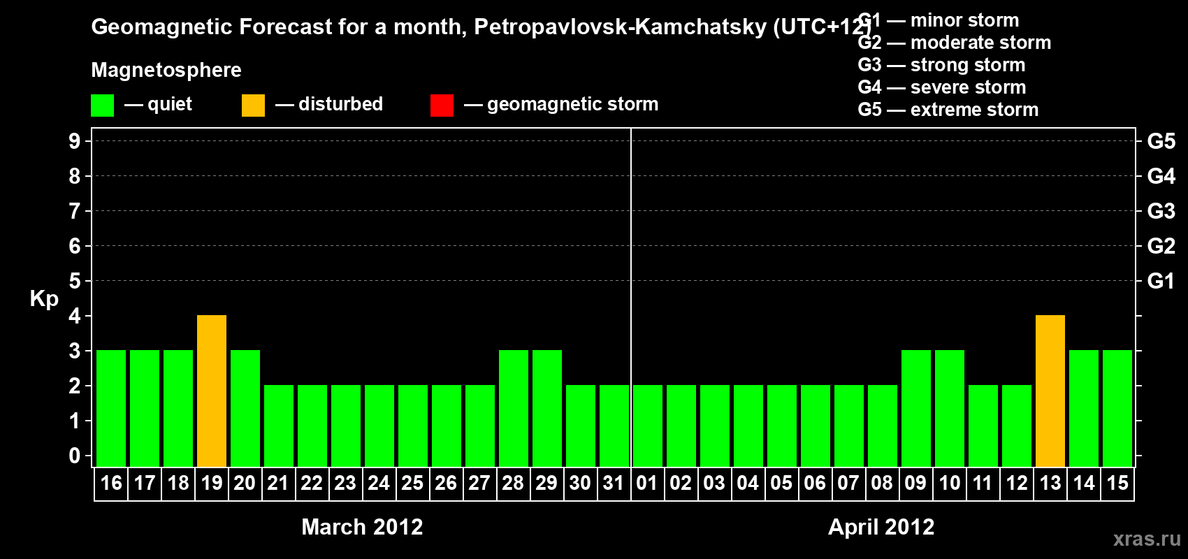 Geomagnetic storm forecast in Petropavlovsk-Kamchatsky for Mar 16, 2012