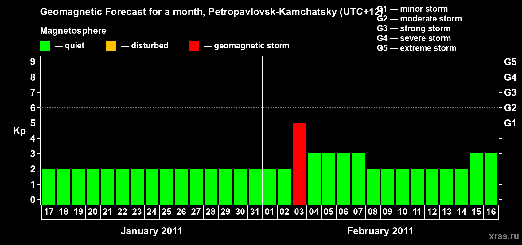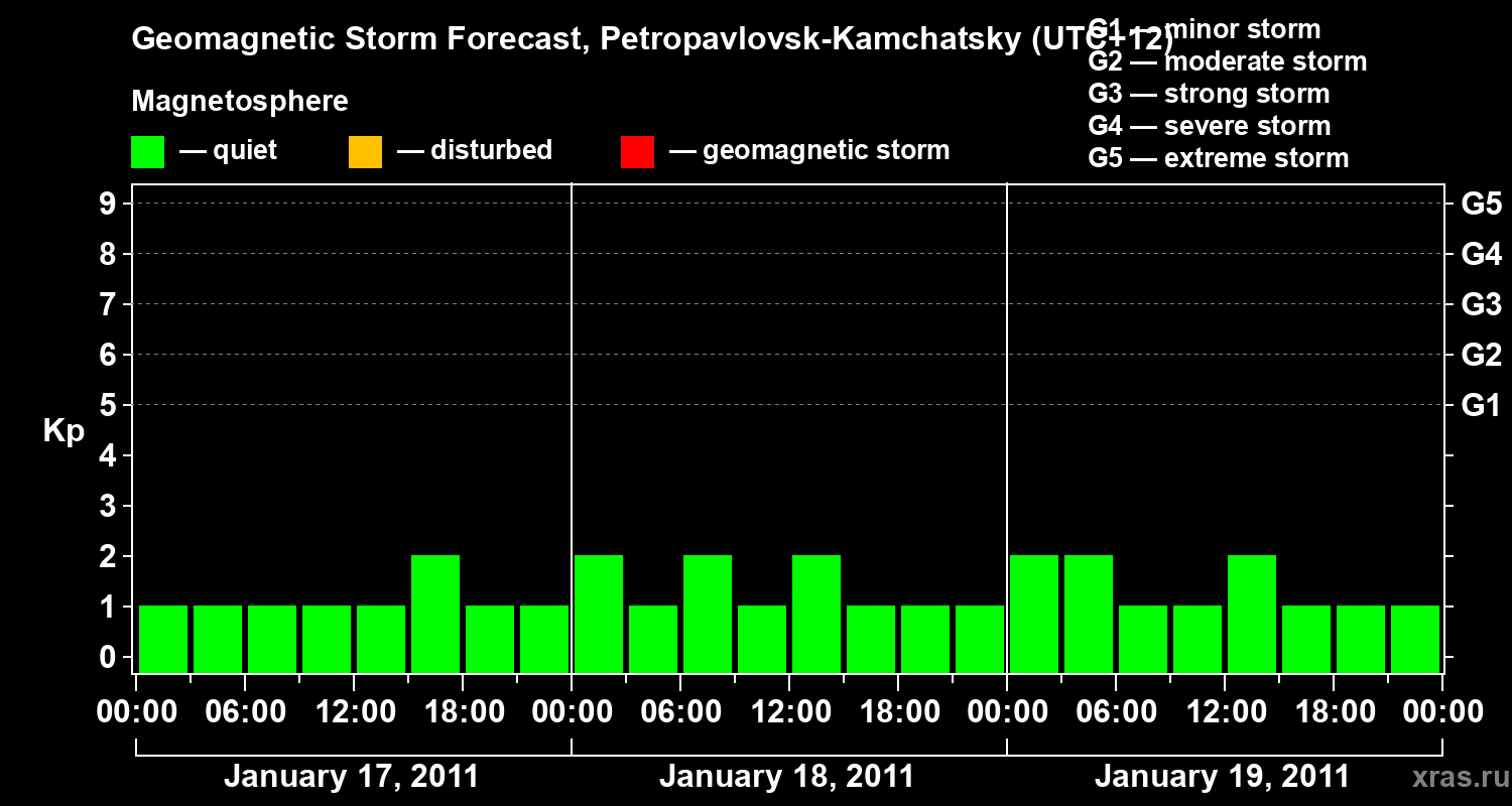 Geomagnetic storm forecast in Petropavlovsk-Kamchatsky for Jan 17, 2011