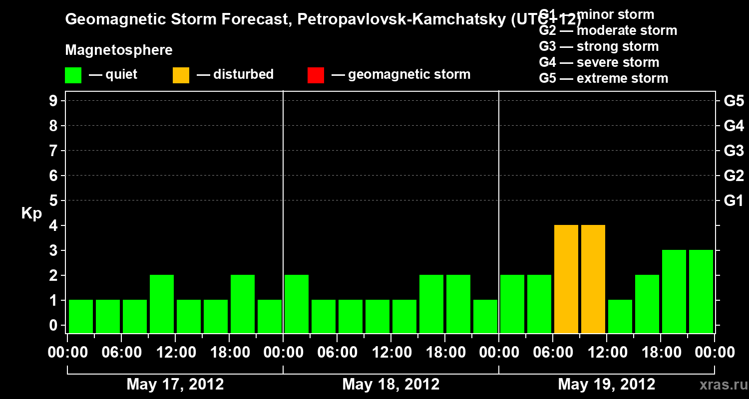 Geomagnetic storm forecast in Petropavlovsk-Kamchatsky for May 17, 2012