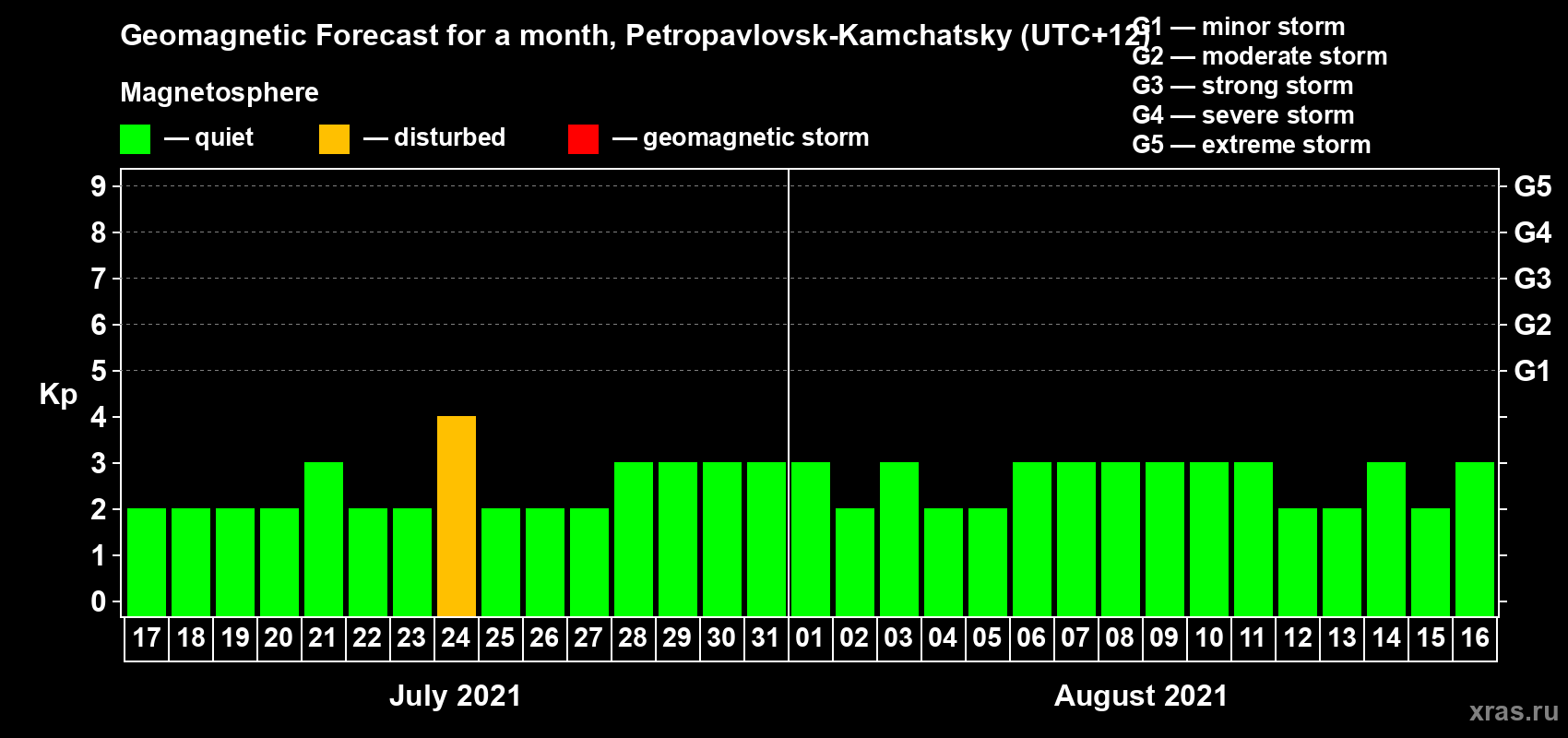 Geomagnetic activity forecast in Petropavlovsk-Kamchatsky — Jul 17, 2021
