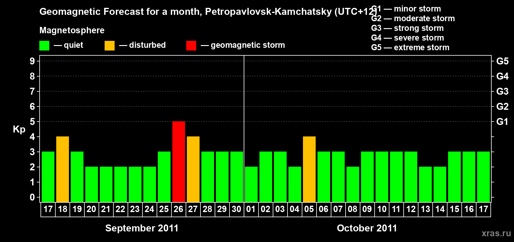 Geomagnetic storm forecast in Petropavlovsk-Kamchatsky for Sep 17, 2011