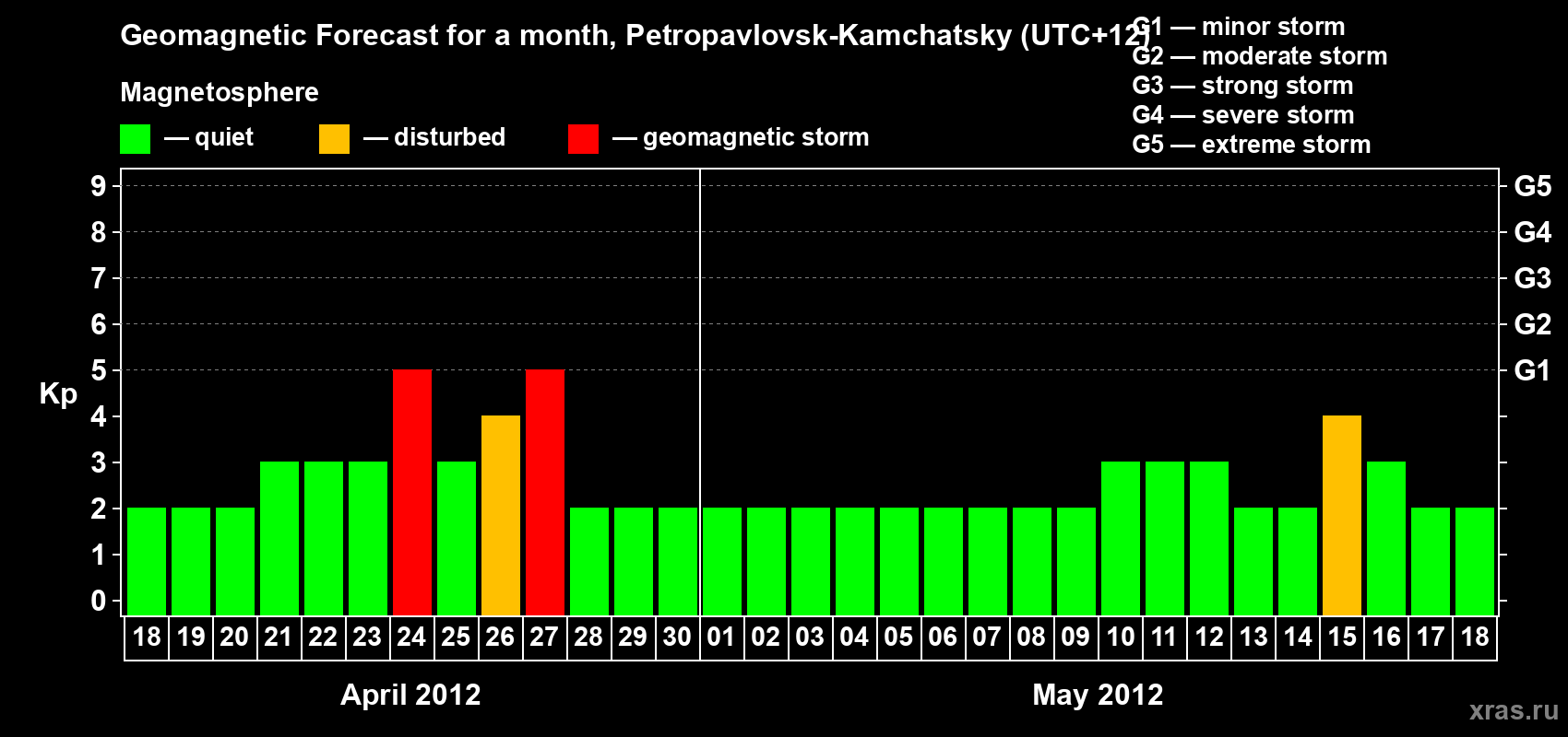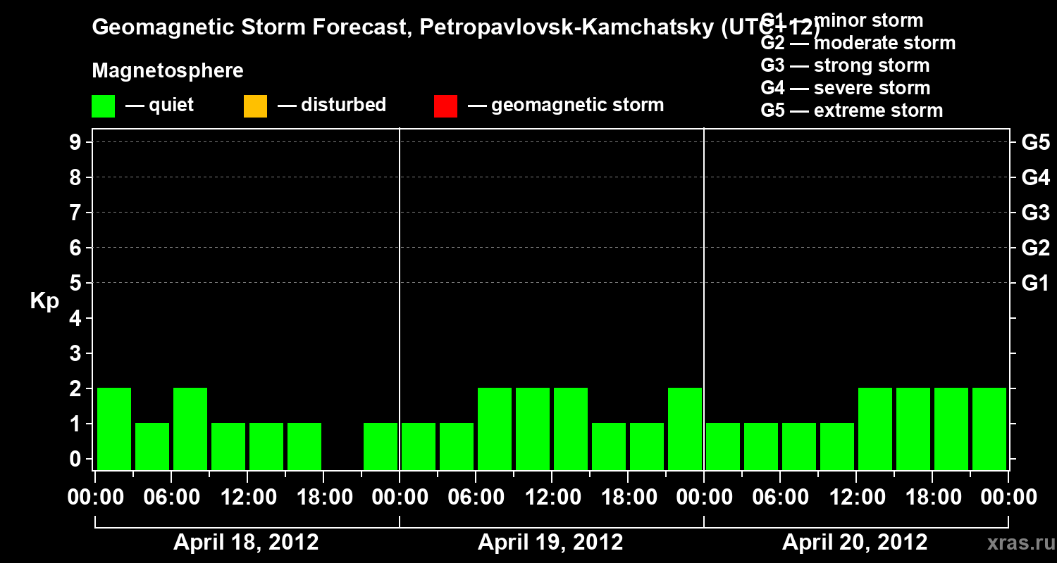 Geomagnetic storm forecast in Petropavlovsk-Kamchatsky for Apr 18, 2012