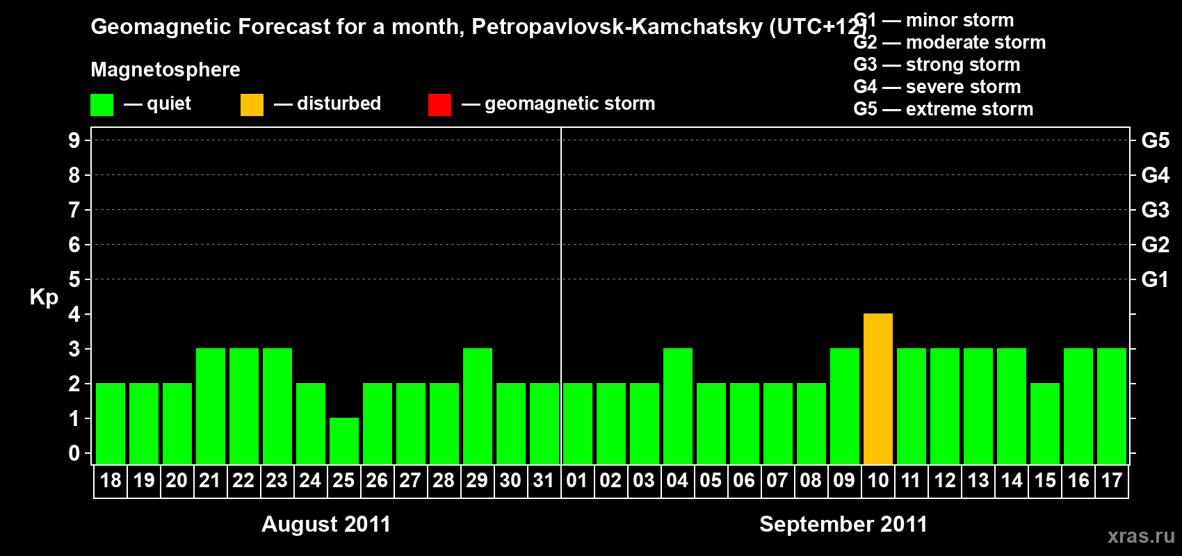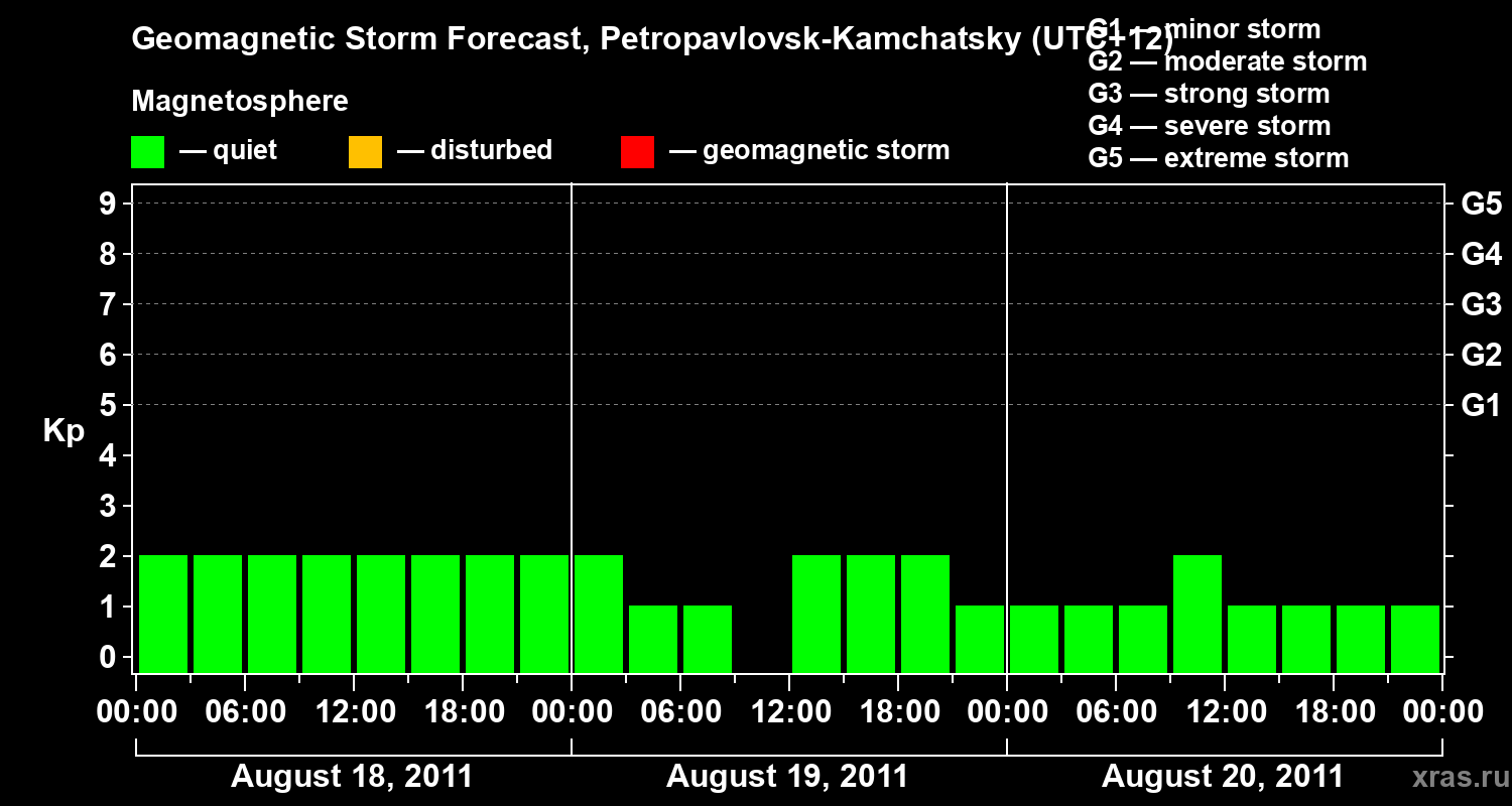 Geomagnetic storm forecast in Petropavlovsk-Kamchatsky for Aug 18, 2011