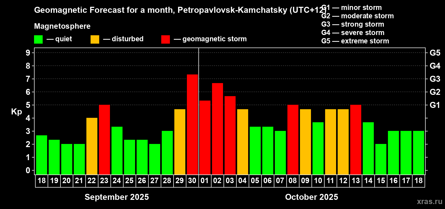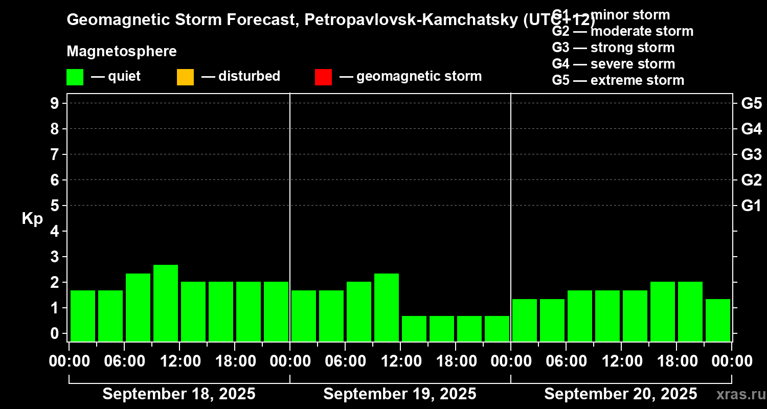 Geomagnetic storm forecast in Petropavlovsk-Kamchatsky for Sep 18, 2025