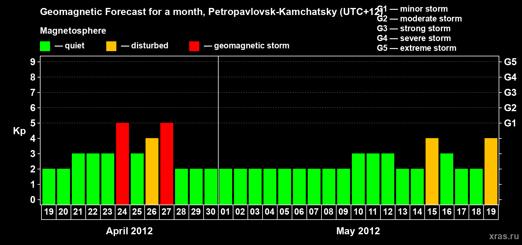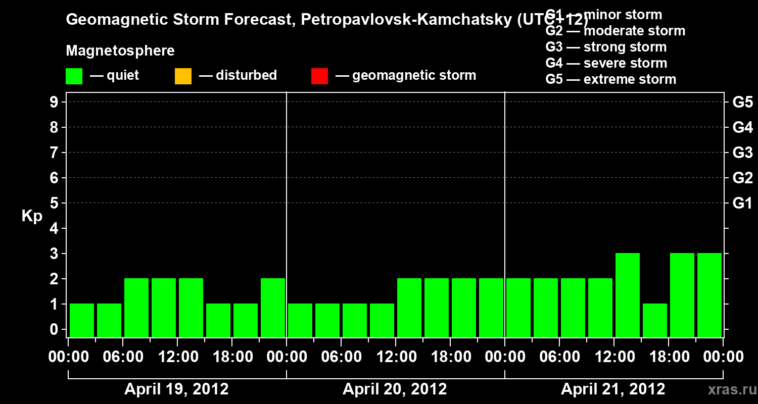 Geomagnetic storm forecast in Petropavlovsk-Kamchatsky for Apr 19, 2012