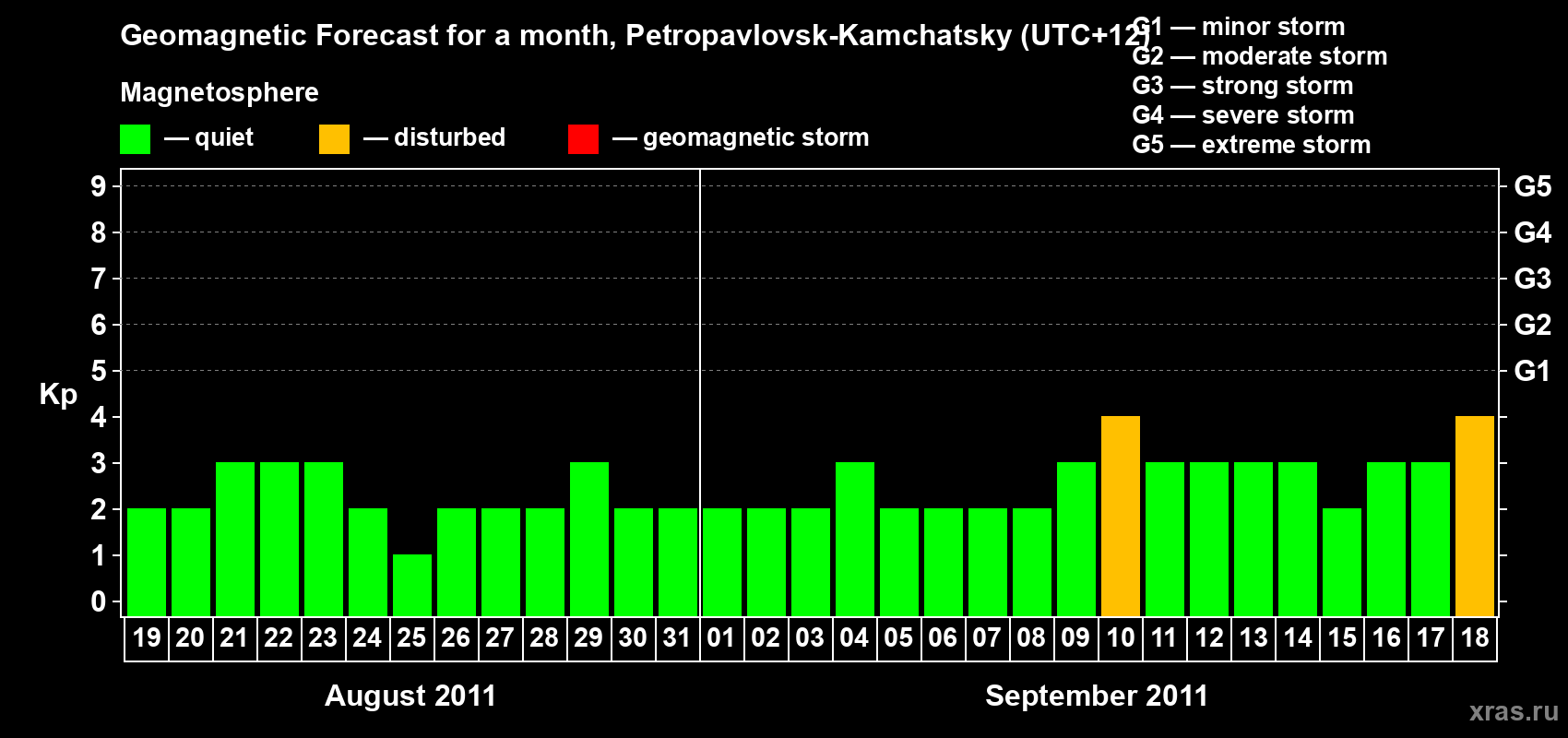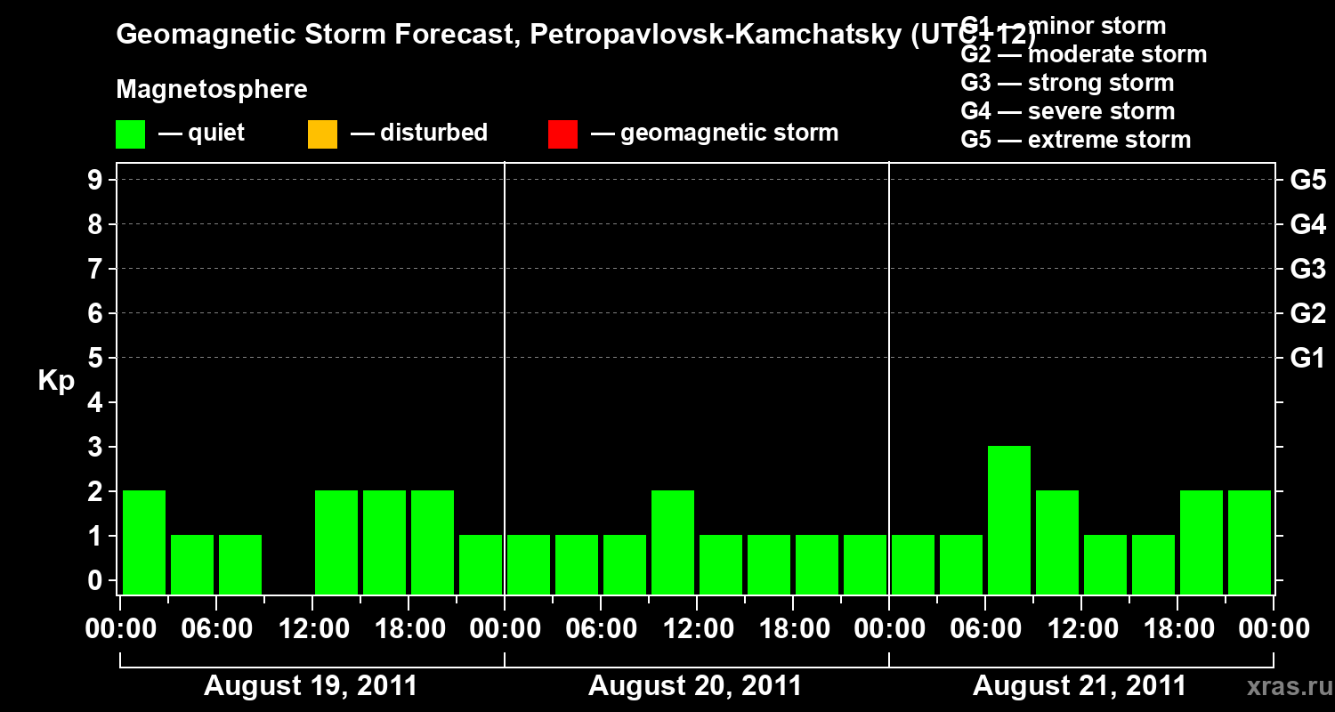 Geomagnetic storm forecast in Petropavlovsk-Kamchatsky for Aug 19, 2011