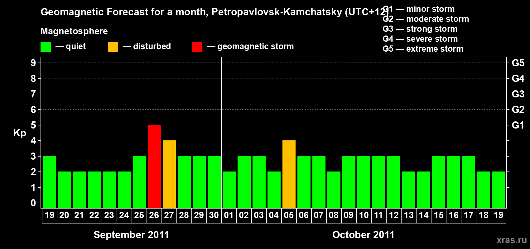 Geomagnetic activity forecast in Petropavlovsk-Kamchatsky — Sep 19, 2011