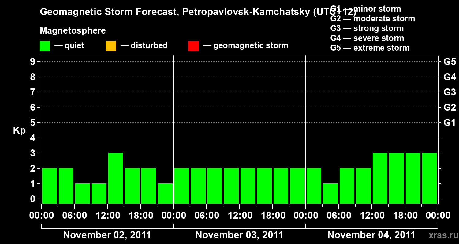 Geomagnetic storm forecast in Petropavlovsk-Kamchatsky for Nov 02, 2011
