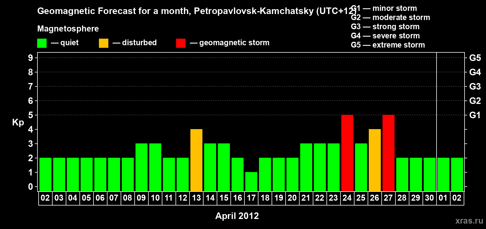Geomagnetic storm forecast in Petropavlovsk-Kamchatsky for Apr 02, 2012