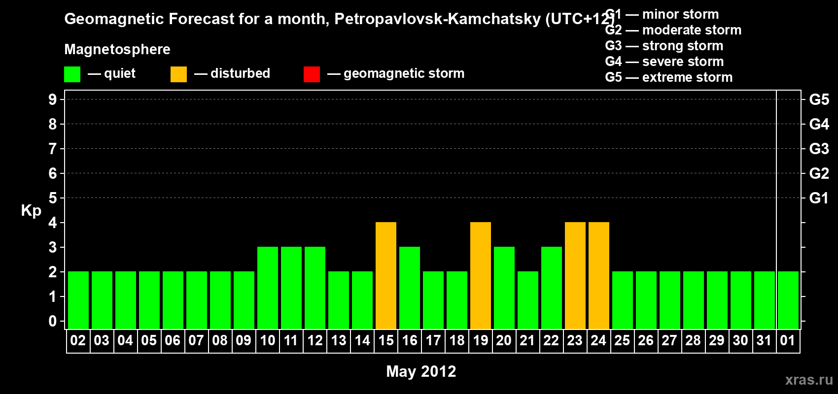 Geomagnetic activity forecast in Petropavlovsk-Kamchatsky — May 02, 2012
