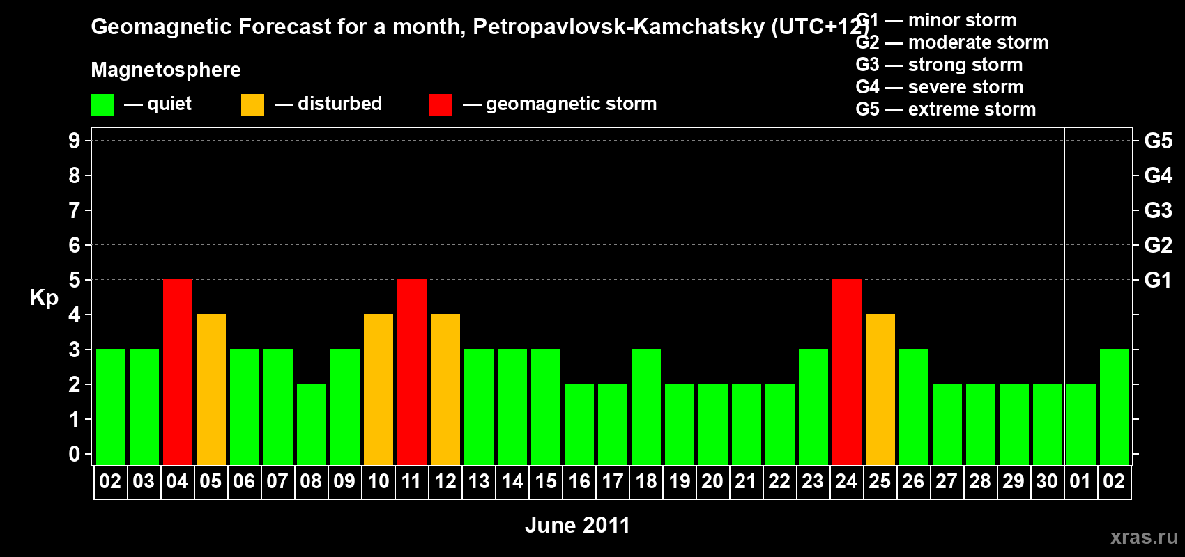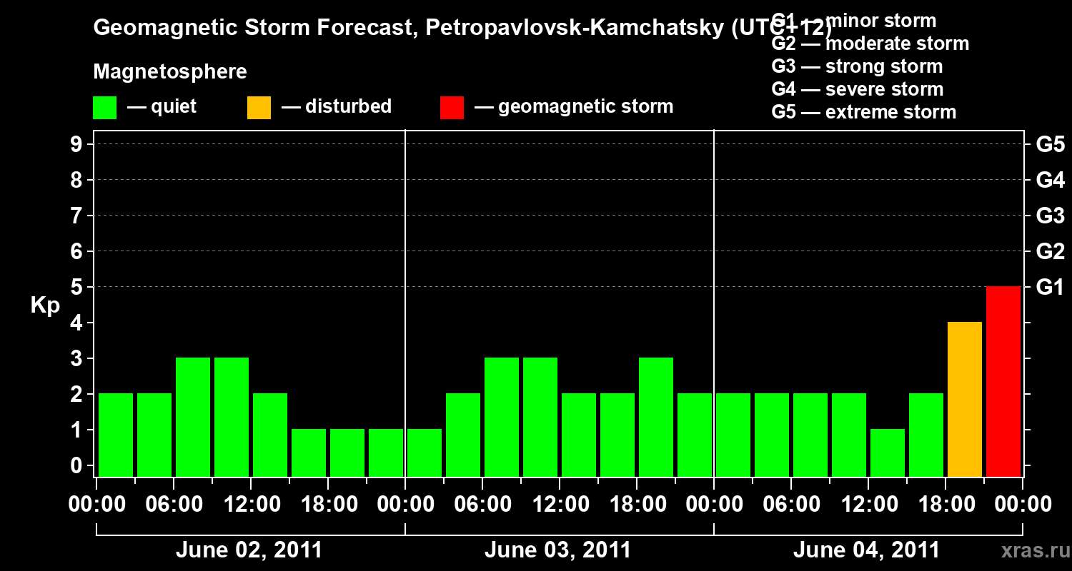 Geomagnetic storm forecast in Petropavlovsk-Kamchatsky for Jun 02, 2011