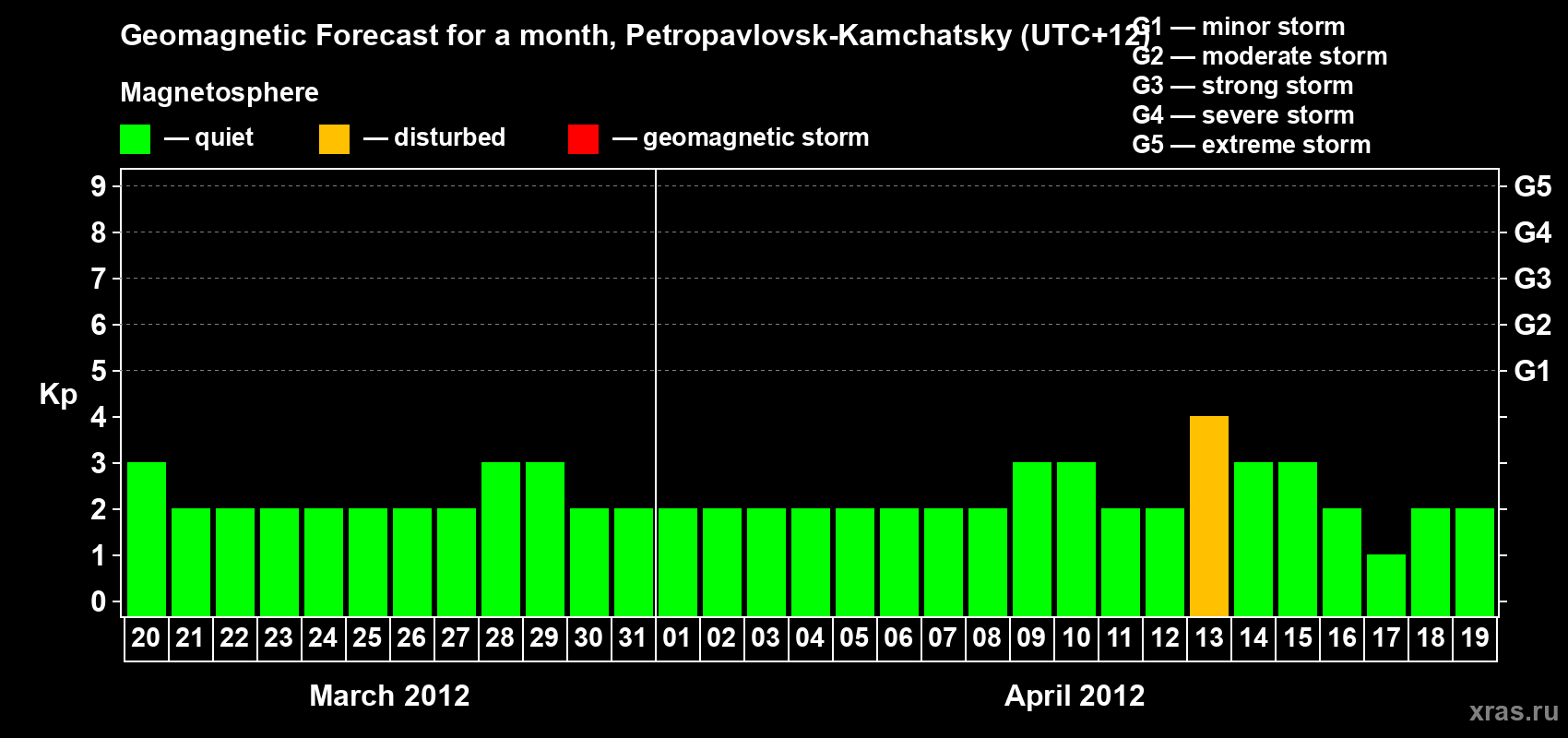 Geomagnetic storm forecast in Petropavlovsk-Kamchatsky for Mar 20, 2012