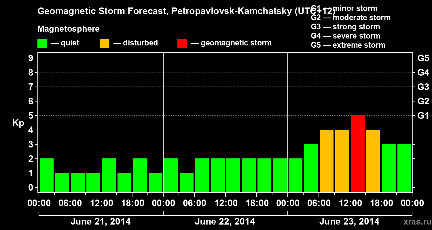 Geomagnetic storm forecast in Petropavlovsk-Kamchatsky for Jun 21, 2014