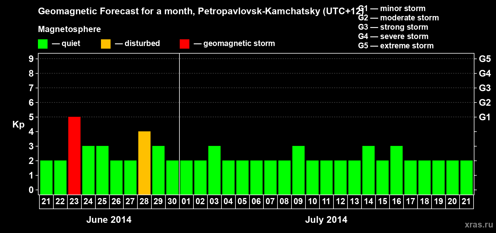 Geomagnetic activity forecast in Petropavlovsk-Kamchatsky — Jun 21, 2014